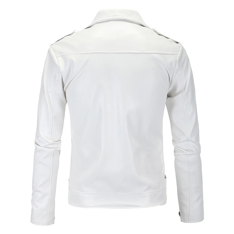 Куртка мужская Кожаная Мотоциклетная, приталенный силуэт, косая молния, из искусственной кожи, черная белая верхняя одежда, на осень