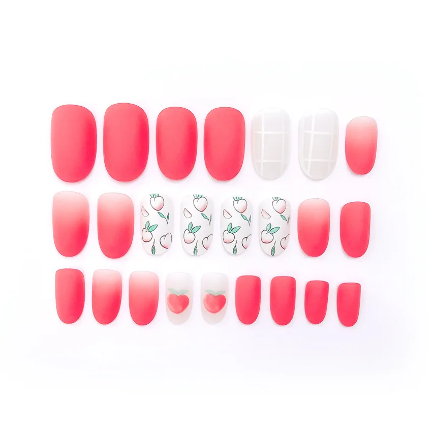 Высококачественные матовые Симпатичные маленькие свежие персиковые круглые накладные ногти Готовые накладные ногти 24 шт.кор.