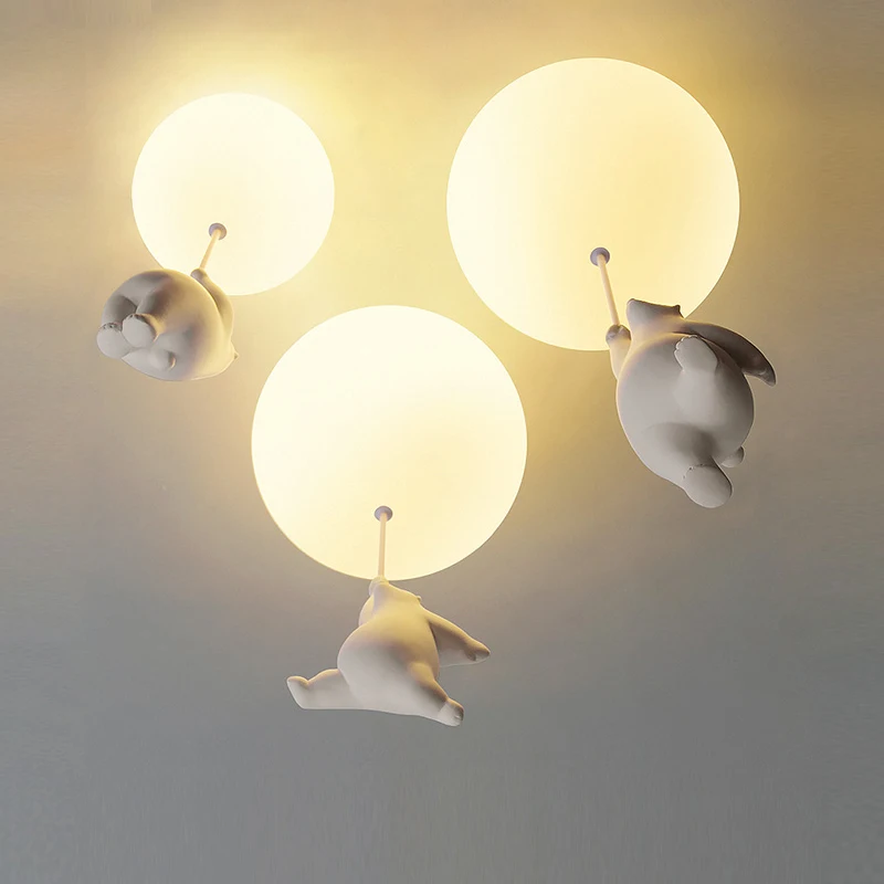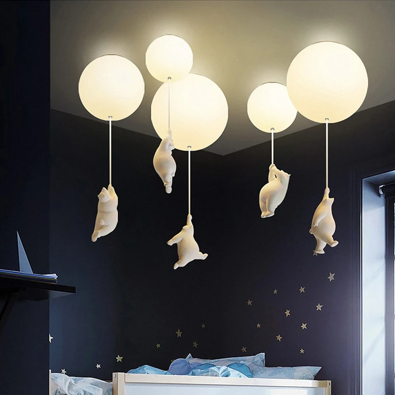 Потолочный светильник с воздушным шаром для детей, детская лампа для спальни, детская потолочная лампа с изображением белого медведя, светодиодная лампа для мальчиков и девочек