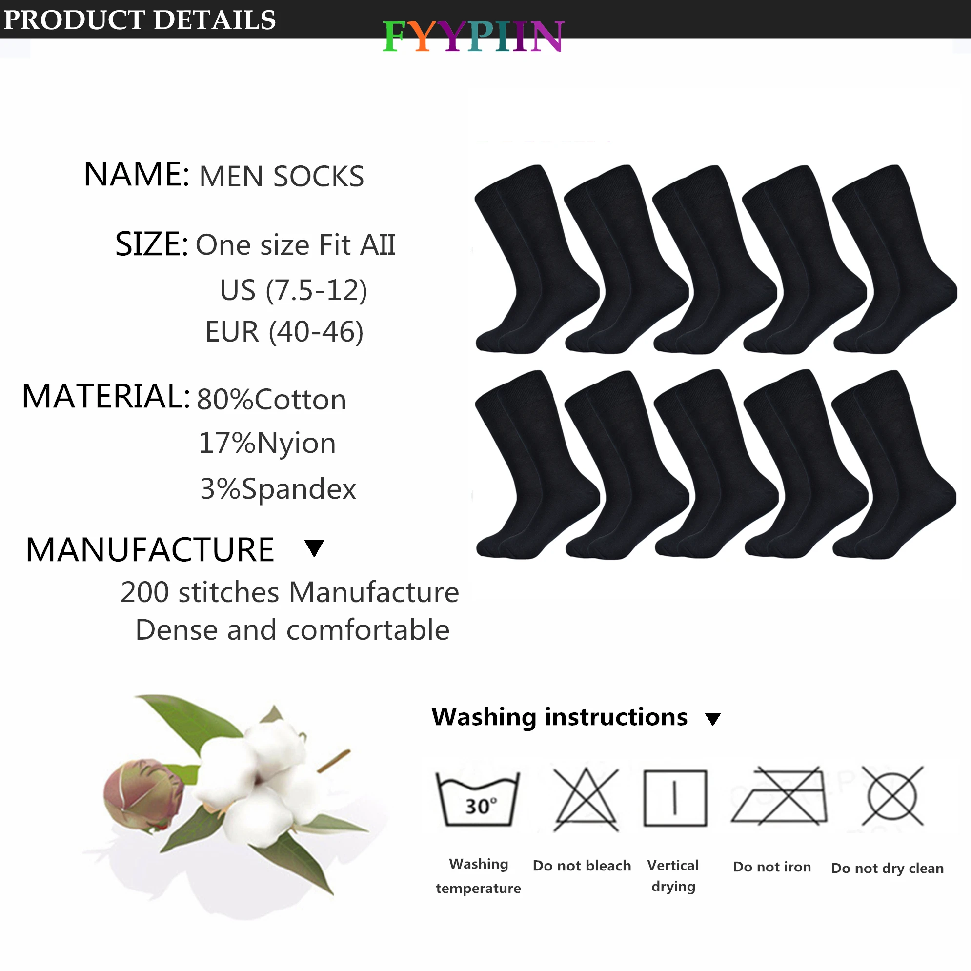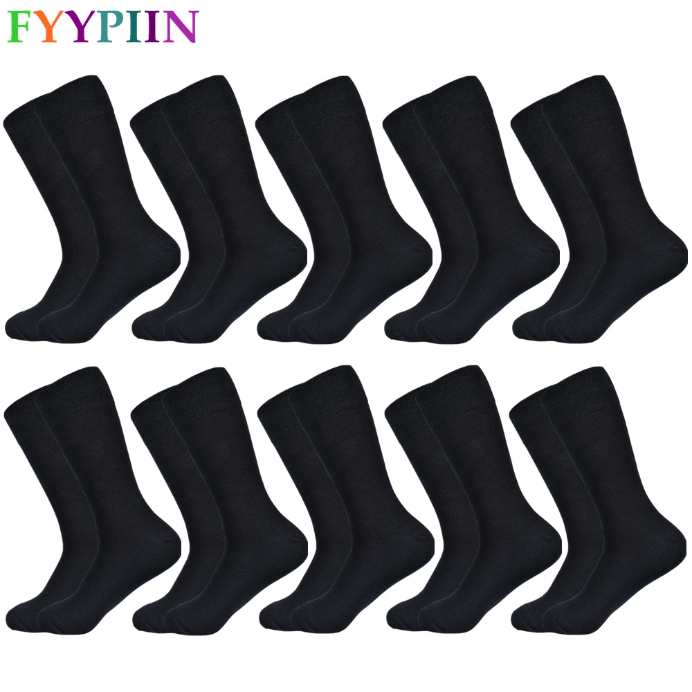 10 пар в комплекте; Черные носки для мужчин, Цвет чесаный хлопковые носки высокого качества с длинным бизнес Повседневное платье размера плюс мужские носки