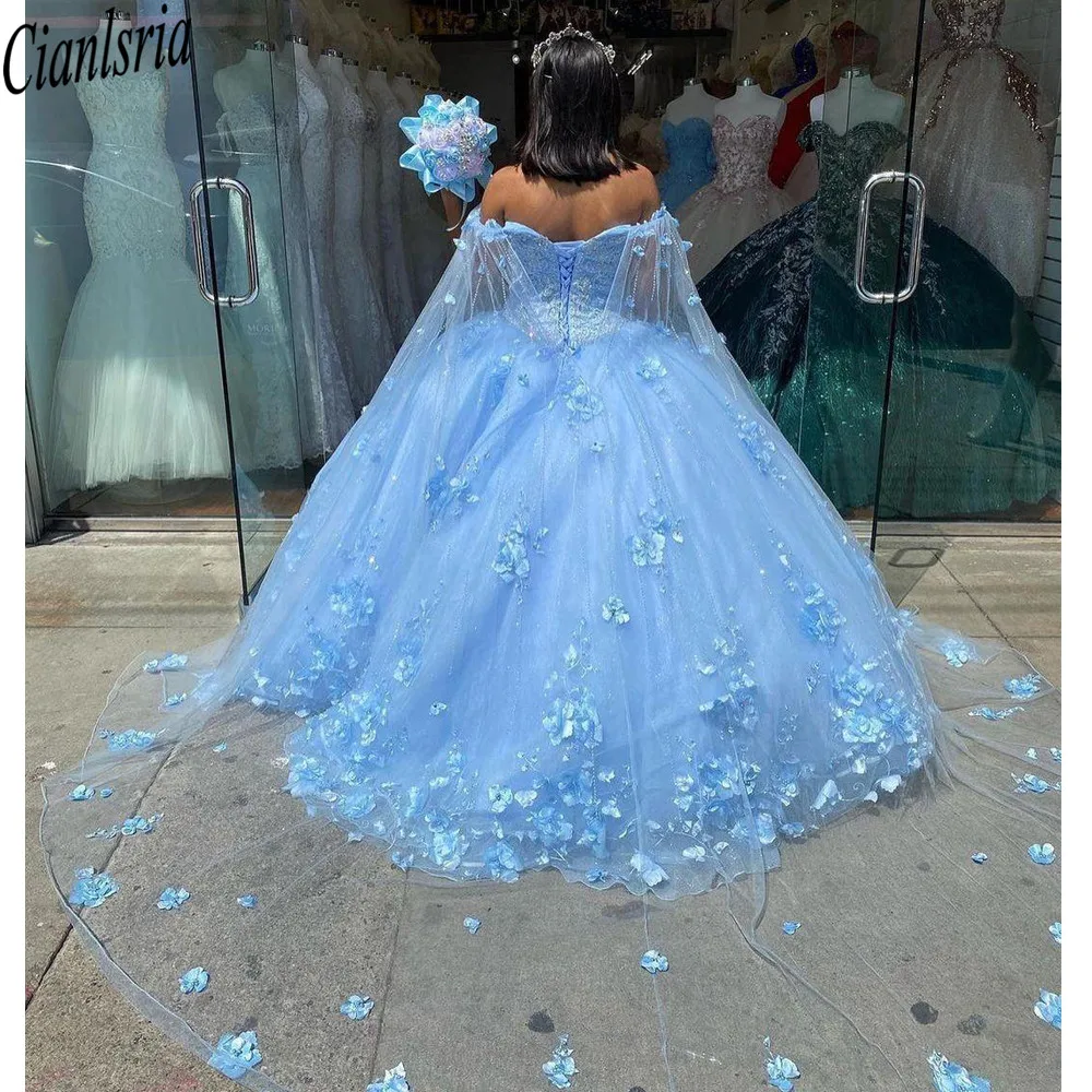 Небесно-голубое платье Vestidos de 15 anos с кружевной аппликацией,...