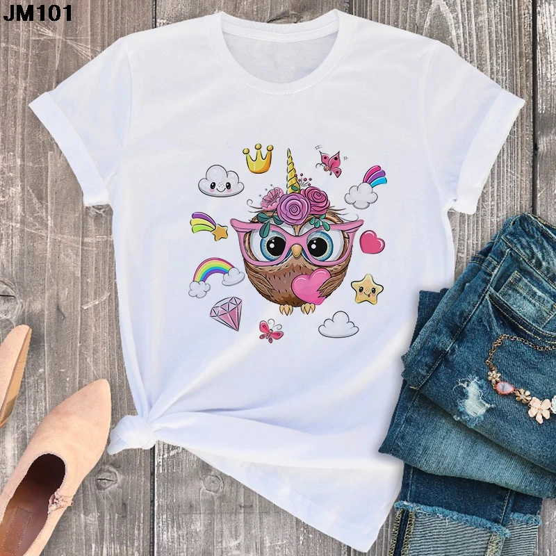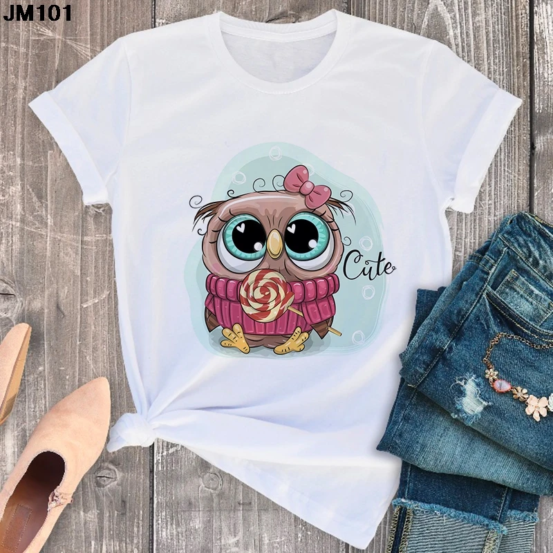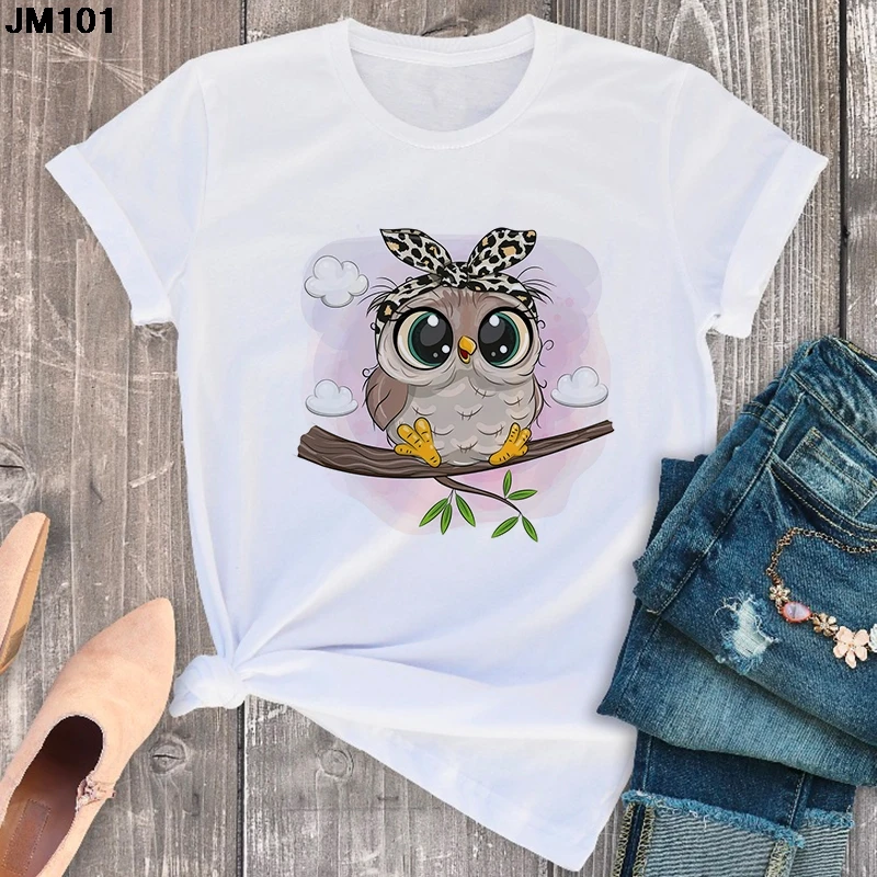 Женская футболка с принтом совы, Повседневная белая футболка с коротким рукавом в стиле Харадзюку, лето 2021