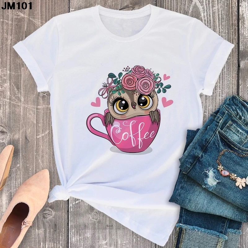 Футболка женская с принтом Совы и кофейного цвета, модная повседнев...