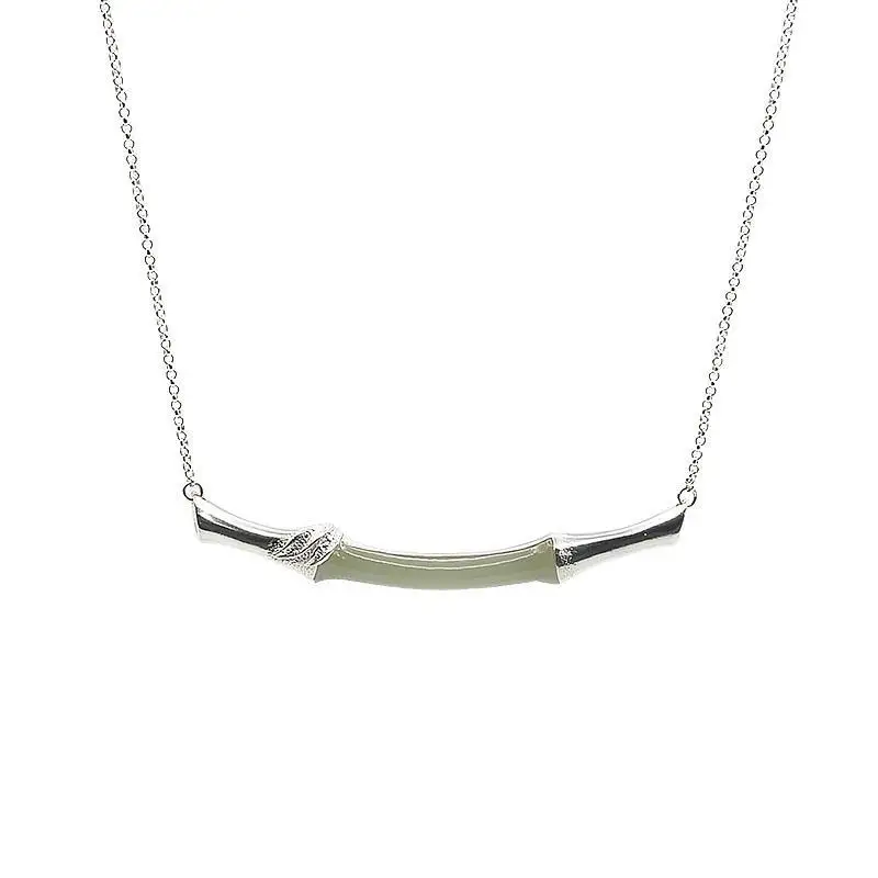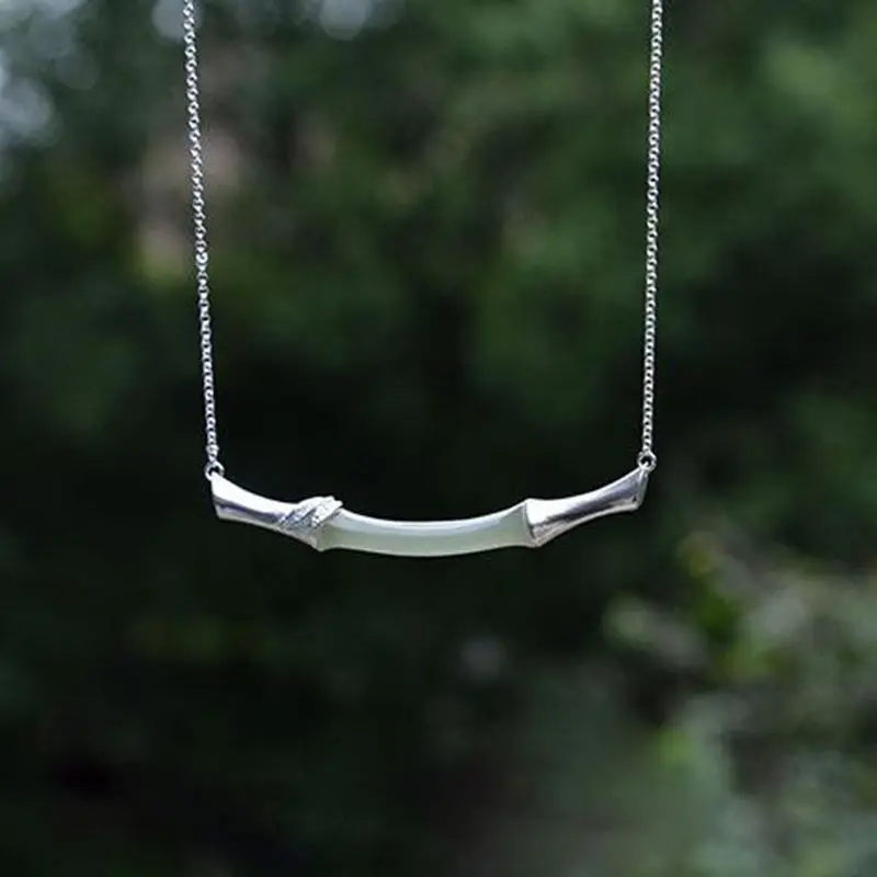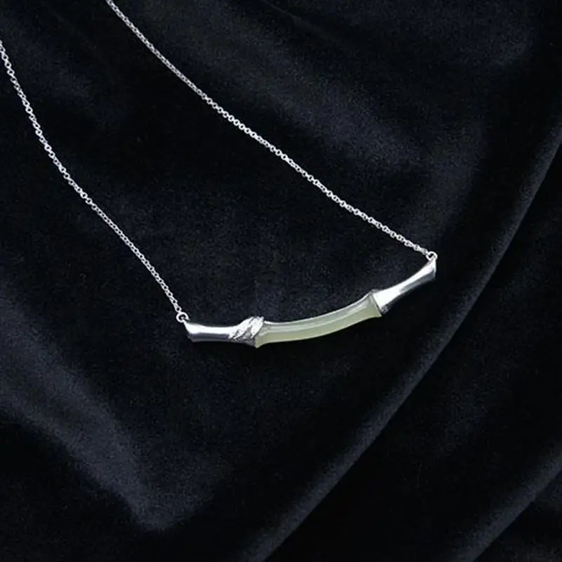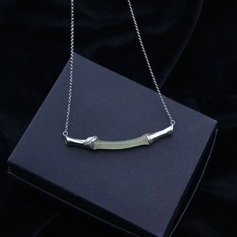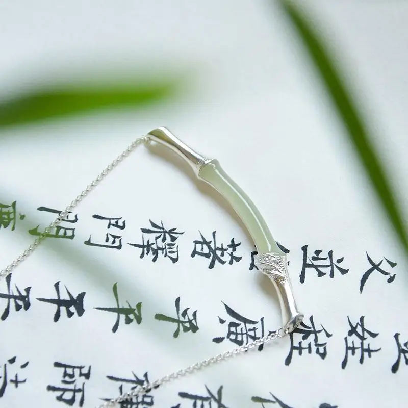 (Hetian) нефрита бамбук S925 стерлингового серебра кулон нефрита простые и элегантные сандалии в стиле ретро золочение ремесло Серебряный Цепочки и ожерелья