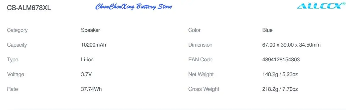 Аккумулятор для динамика Cameron Sino 7800 мАч10200 мАч для Altec Lansing Omni Jacket, iMW678, Lifejacket, IMW789, LifeJacket XL
