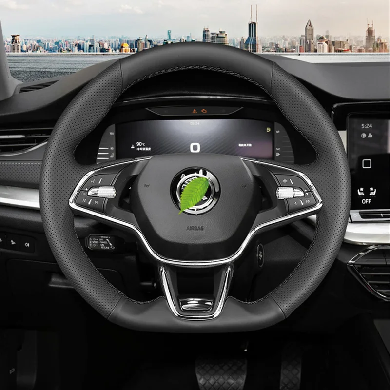 Прошитая вручную замшевая кожаная накладка на руль, для Skoda 2017-2021 2018 2019 2020 Kodiaq Octavia Superb Karoq Kamiq, Автомобильный интерьер