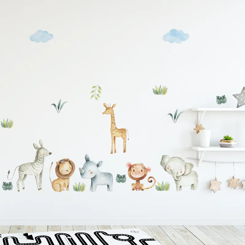 Мультфильм Животные джунгли настенные наклейки для детской комнаты украшение для детской комнаты акварель сафари ПВХ Наклейки на стены Гостиная