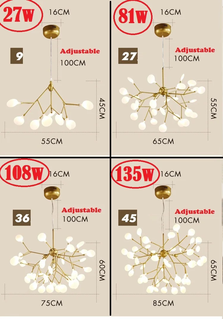 Heracleum люстра ветка листьев дерева люстра Светлячок освещение гостиная спальня кухня Остров Люстра Подвеска лампы Fixutres