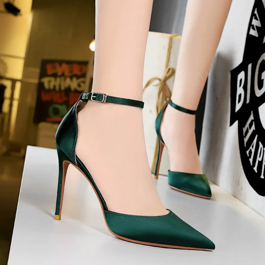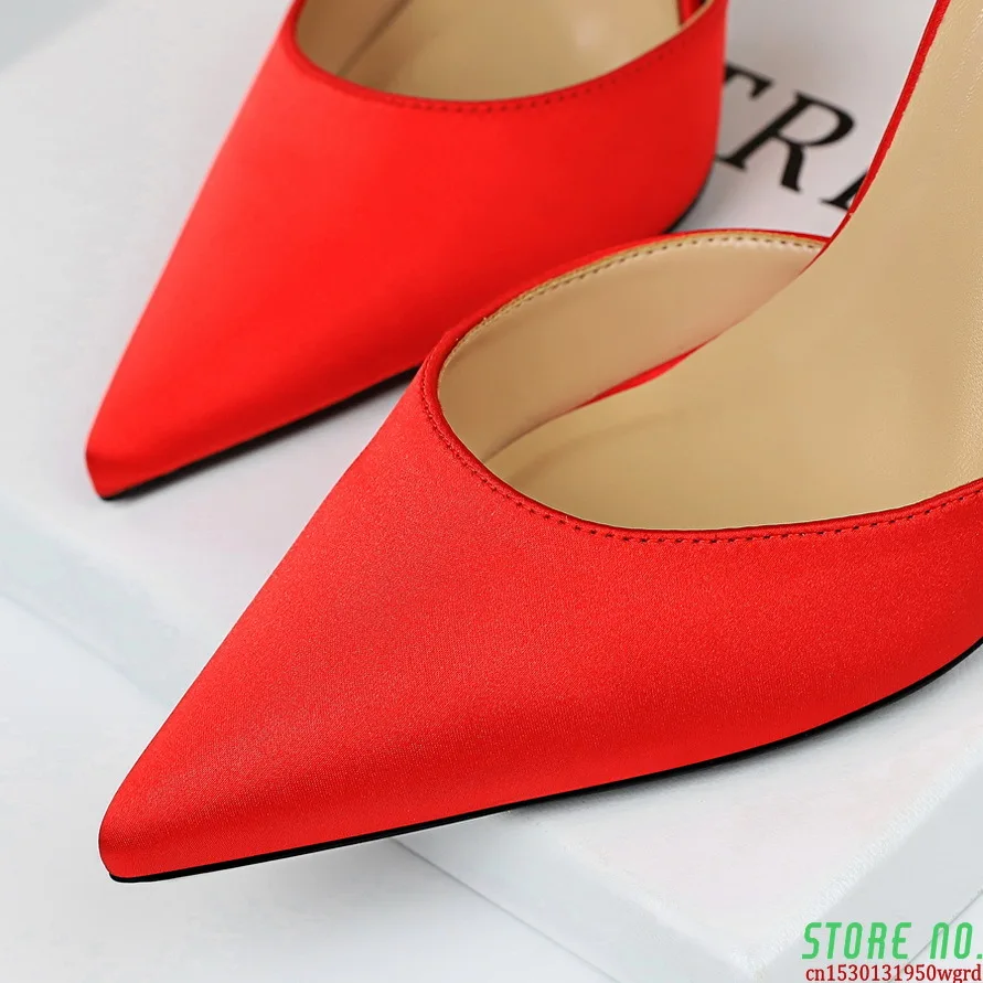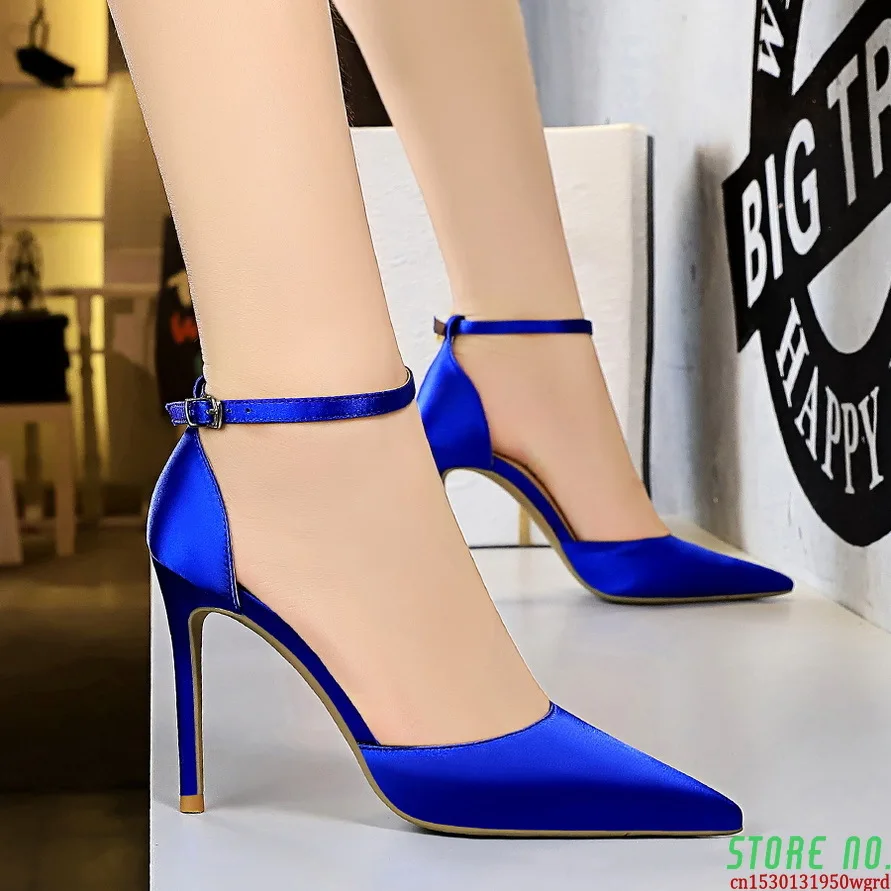 Bigtree/Женская обувь на высоком каблуке 10 см; Пикантные босоножки; Свадебная обувь; Шелковые блестящие каблуки; Фетиш-стилеты; Женские туфли-лодочки; Цвет синий; Размеры 34-43