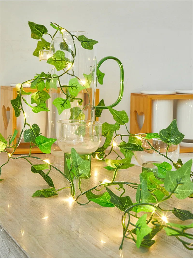 2 м гирлянда плюща, лоза огни, сказочные огни Гирлянда Венок искусственный зеленый лист Цветы на День святого Валентина вечерние свадебные украшения для сада Рождество декор для помещения наружное украшение