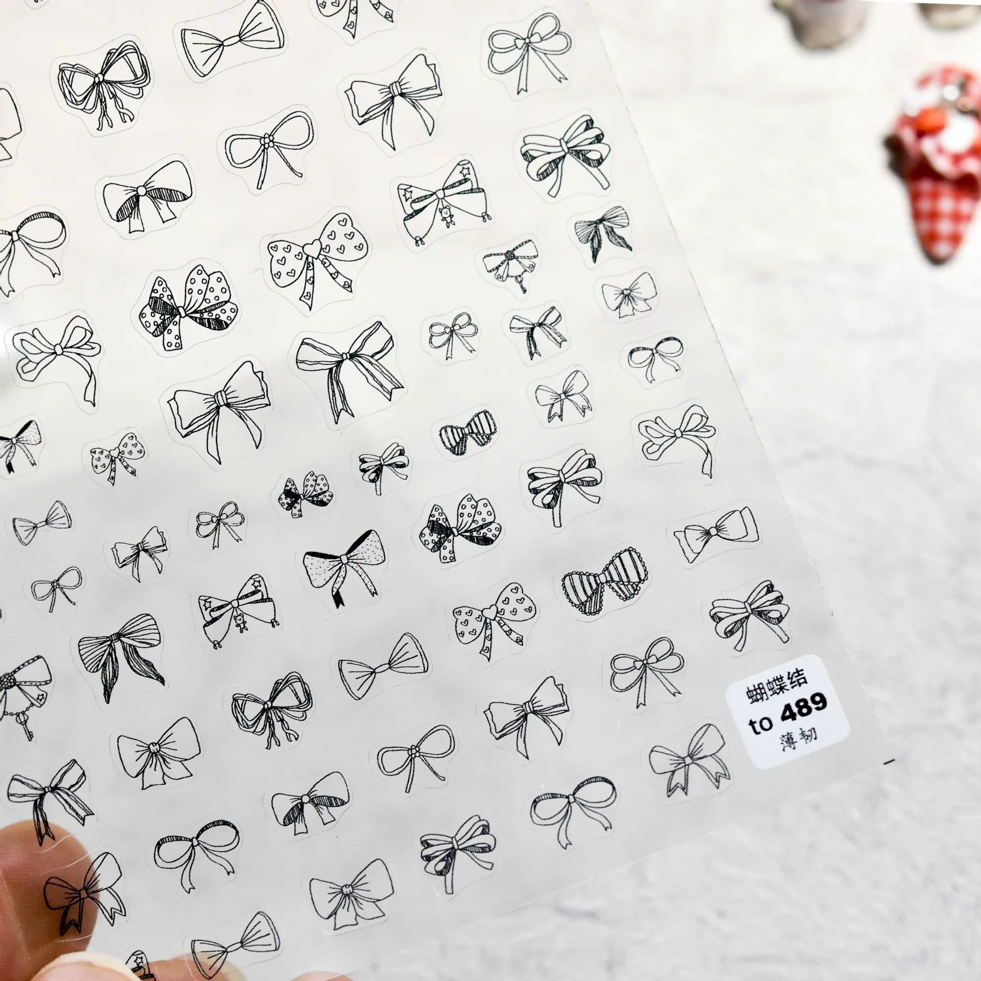 Наклейки для ногтей, высокое качество, клейкие, милые, девчачьи, сердца, черно-белые, с бантом, для самостоятельного дизайна, наклейки для ногтей, фольга, украшения