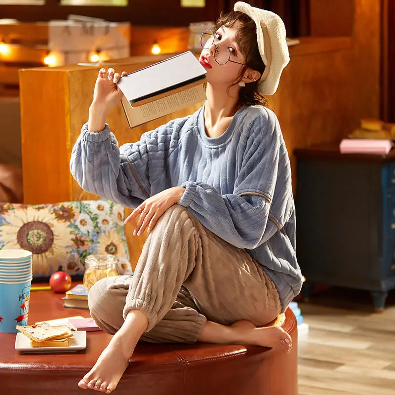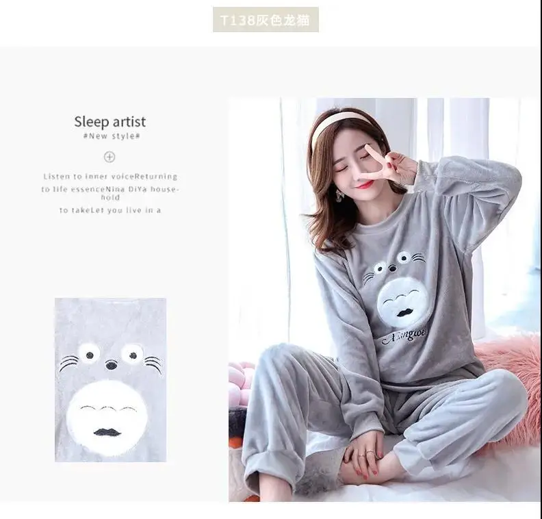 Осенне-зимние теплые фланелевые женские пижамные комплекты, толстая Коралловая бархатная пижама с длинным рукавом, мультяшная одежда для сна, тонкий фланелевый пижамный комплект