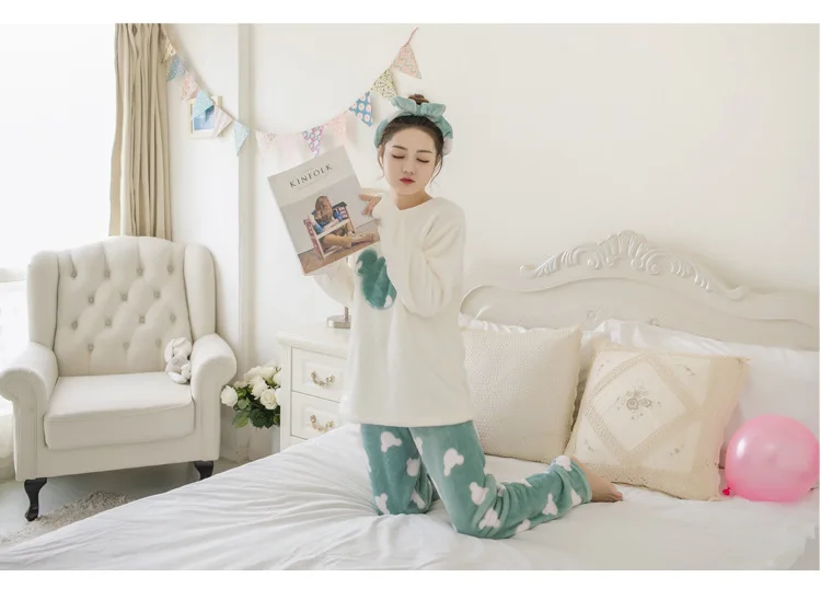 Зимние фланелевые пижамные комплекты, розовый, зеленый, милый домаш...