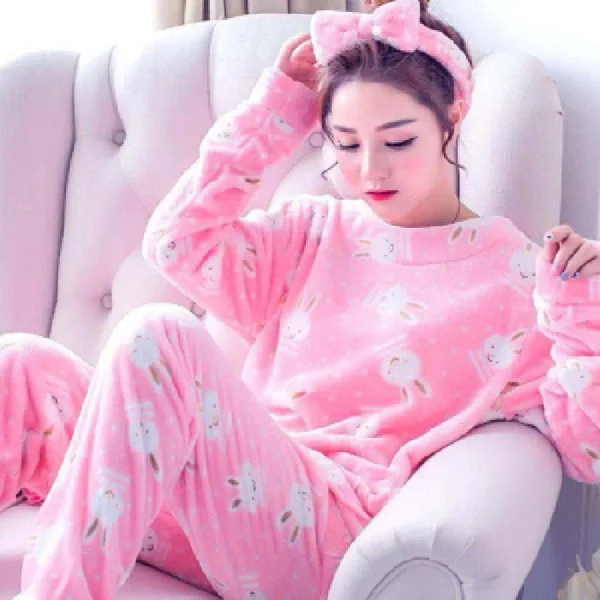 Пижама женская зимняя фланелевая с длинным рукавом и мультяшным при...
