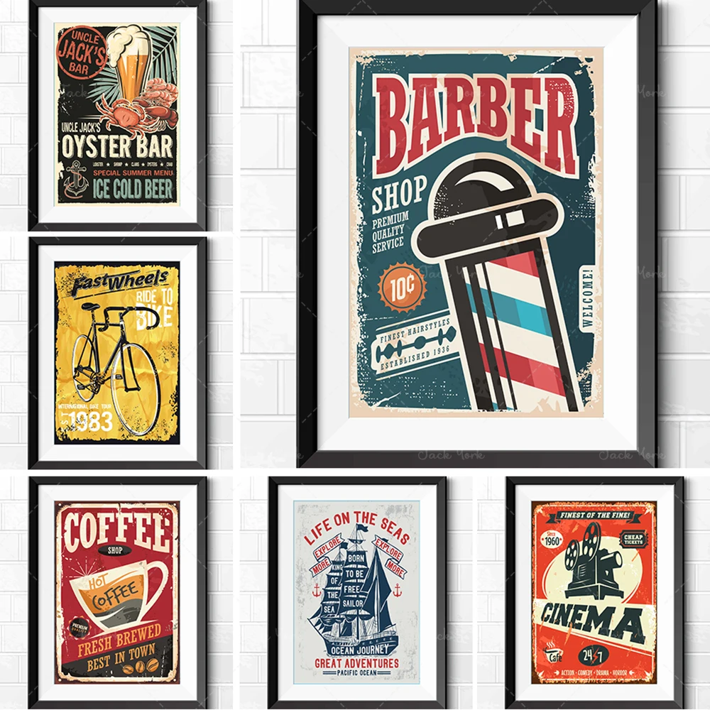 Плакат в стиле ретро, для кинотеатра, мотоцикла, бара, бильярда, парикмахерской, морского, американского ресторана