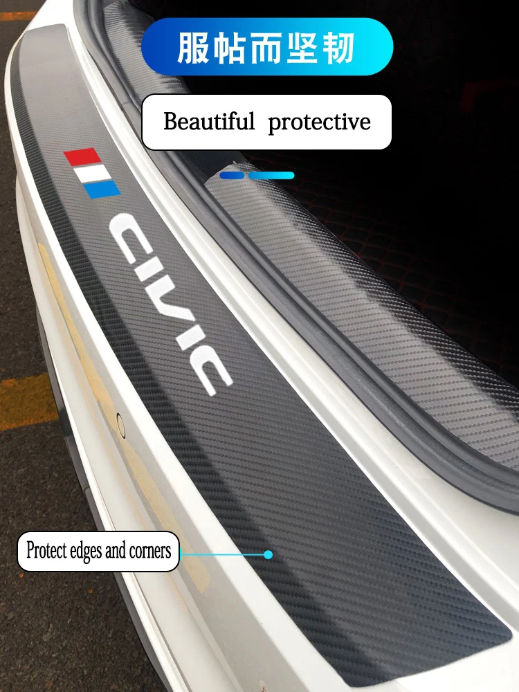 Кожаные наклейки на задний бампер автомобиля для Honda civic 10, 8, 2017, 2018, защитная пленка из углеродного волокна для багажника автомобиля