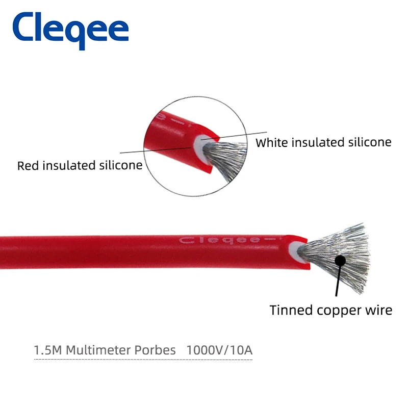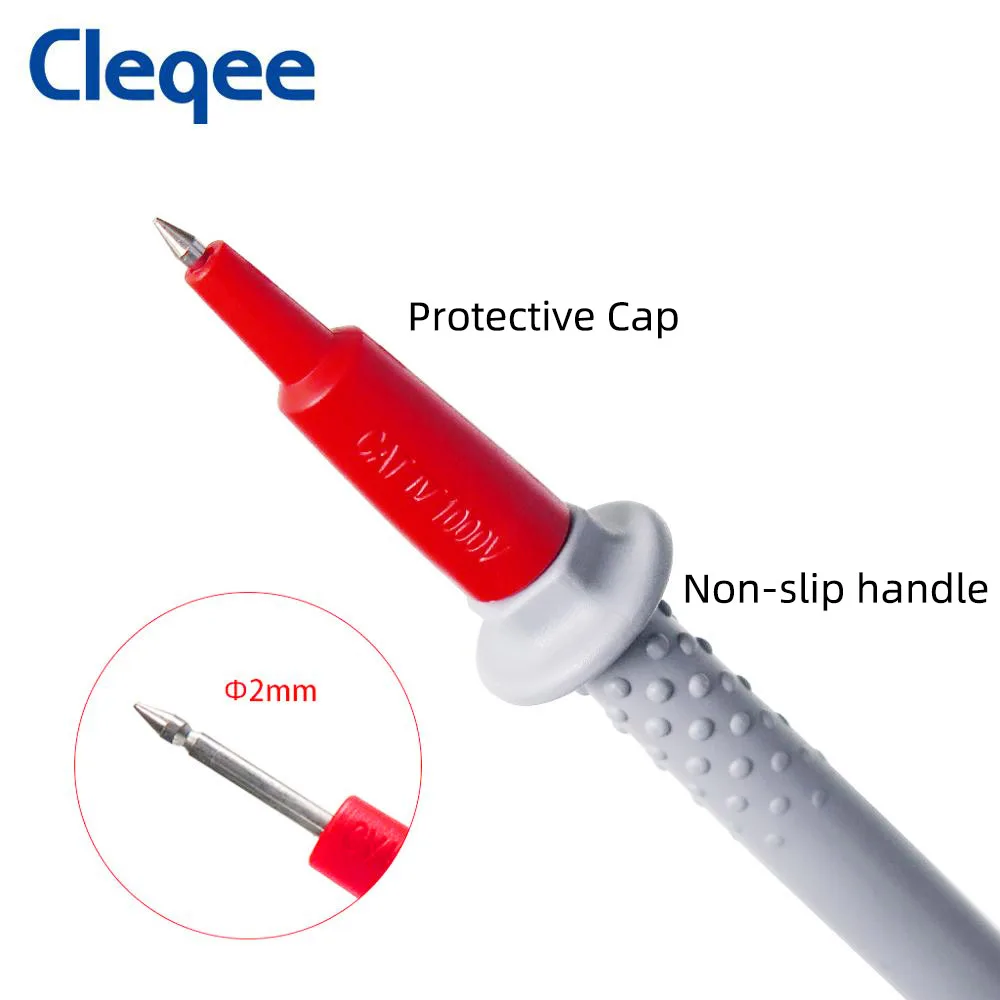 Cleqee P1505B Двойная силиконовая датчики для мультиметра 4 мм контрольные выводы вилки типа банан Тесты привести с остро заточенными Запасные иглы 1,5 M 1000V10A