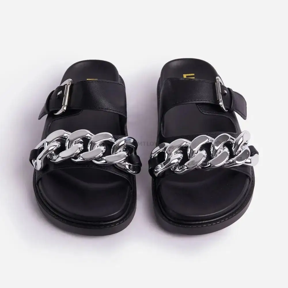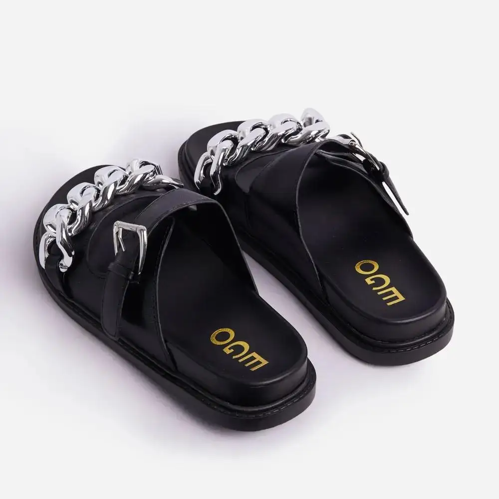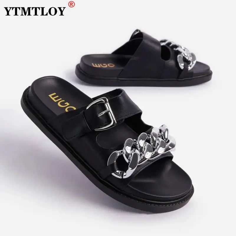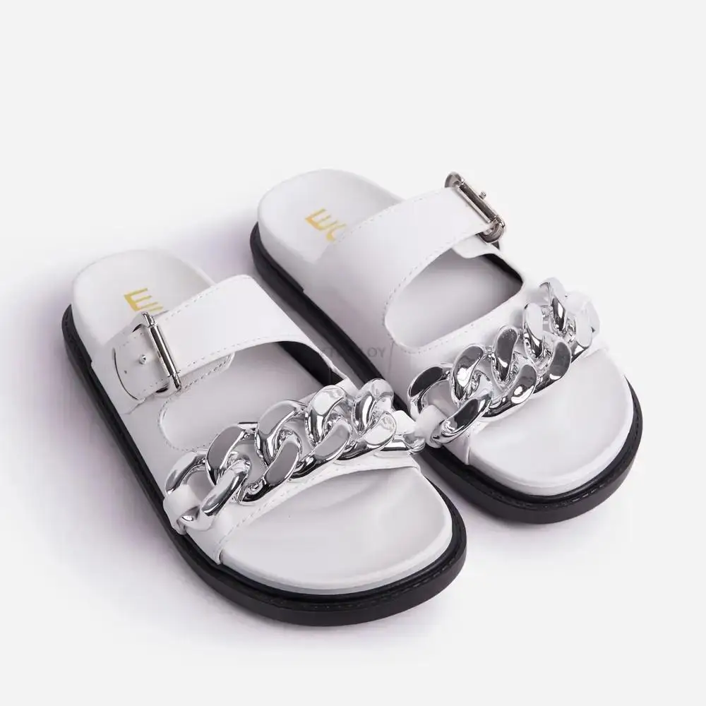 Босоножки женские с открытым носком, модные сандалии с ремешками-цепочками, летняя пикантная обувь с открытым носком, цвет черныйбелый
