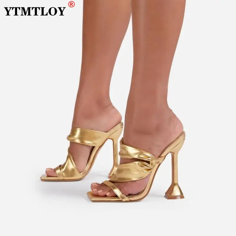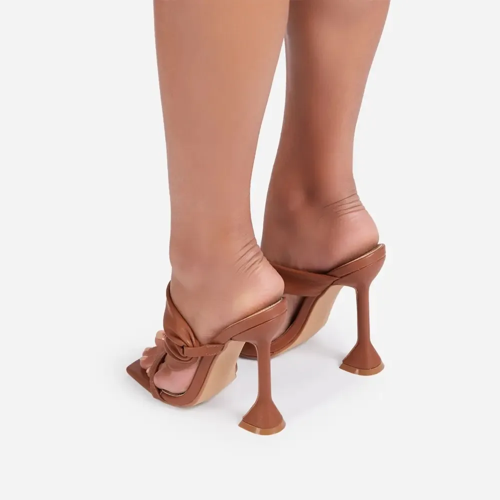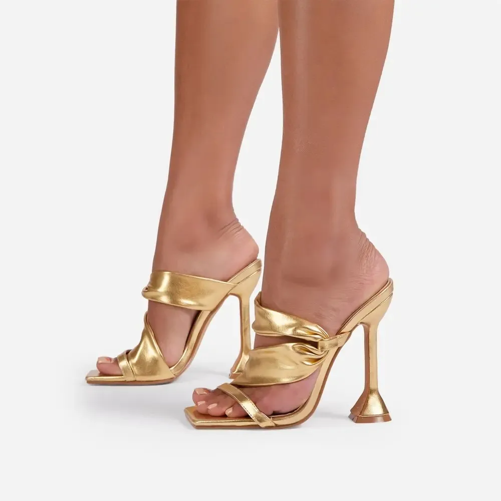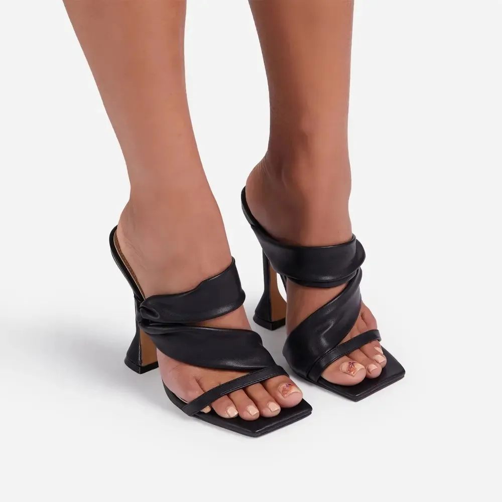 Шлепанцы женские на высоком тонком каблуке, элегантные сандалии с к...