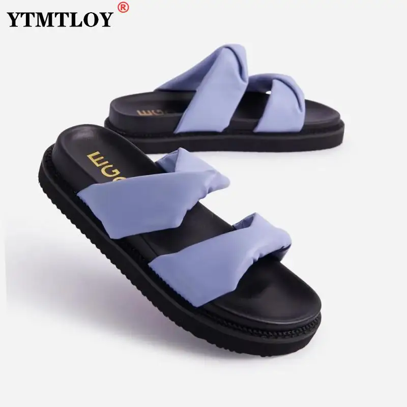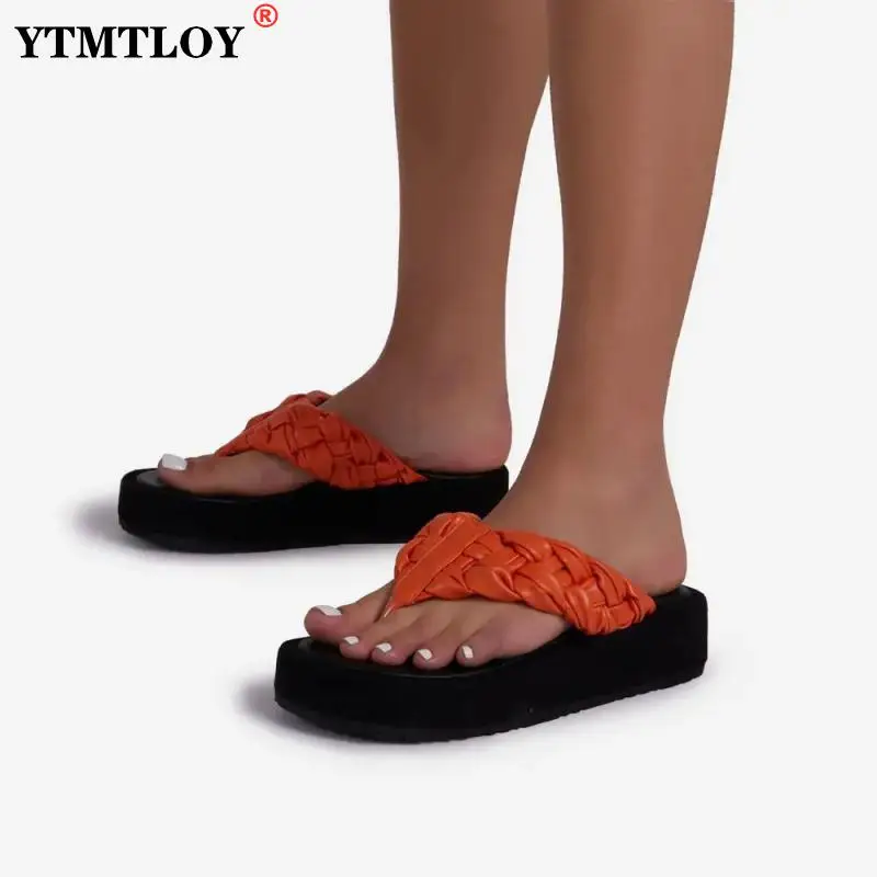 Женские шлепанцы на платформе 2021, летние плетеные тапочки, Женска...