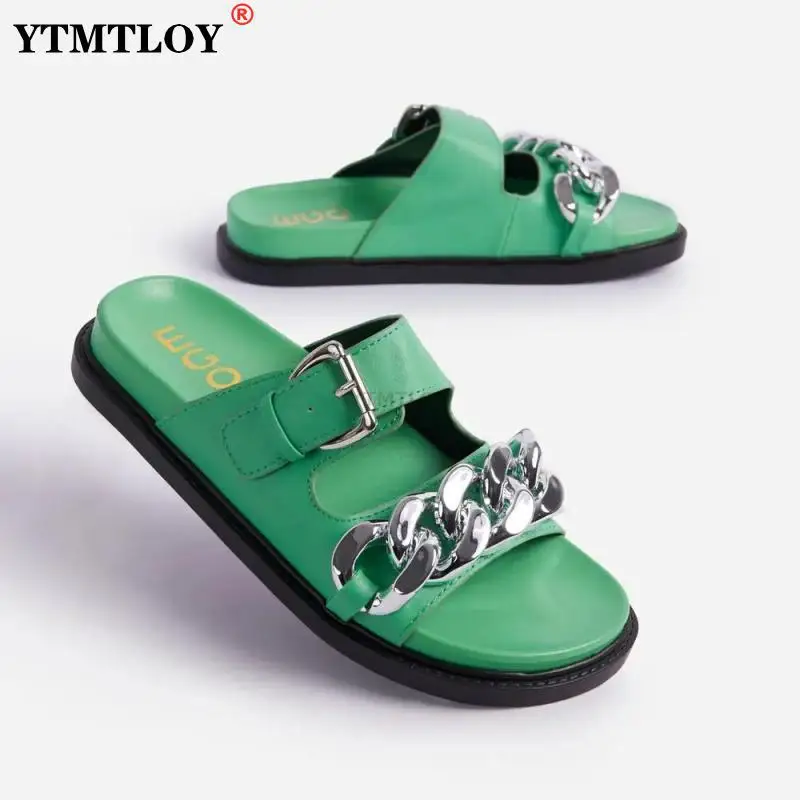 Женские блестящие мюли на металлической цепочке, летние модные повс...