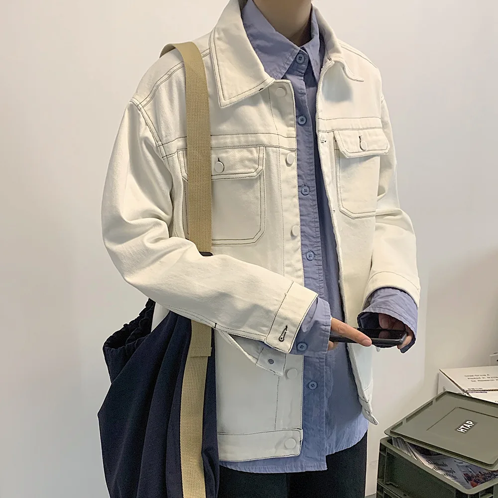 Джинсовая куртка для отдыха для мужчин и женщин, универсальное модное пальто из денима, однотонный топ с длинным рукавом