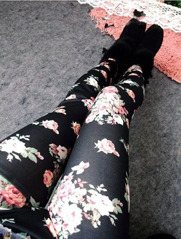 Женские леггинсы с цветочным принтом, эластичные винтажные леггинсы