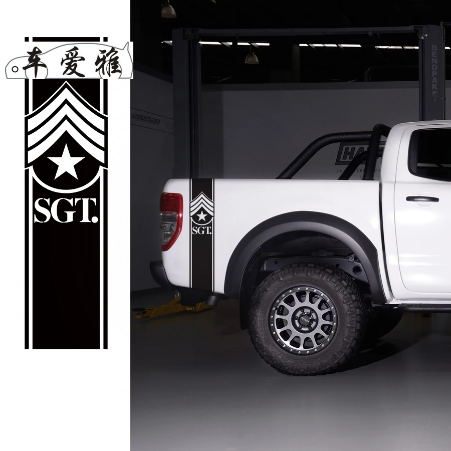 2 предмета в стиле милитари сержант знак боковой хвост кузов пикапа полосы графических виниловые автомобильные наклейки, пригодный для Ford Ranger 2012-2019