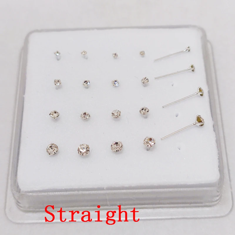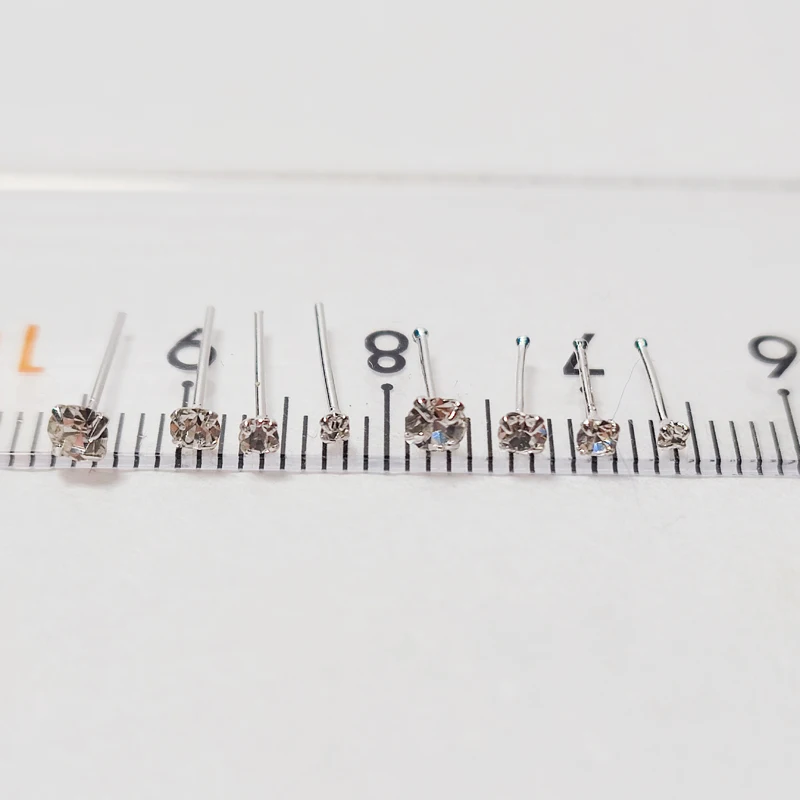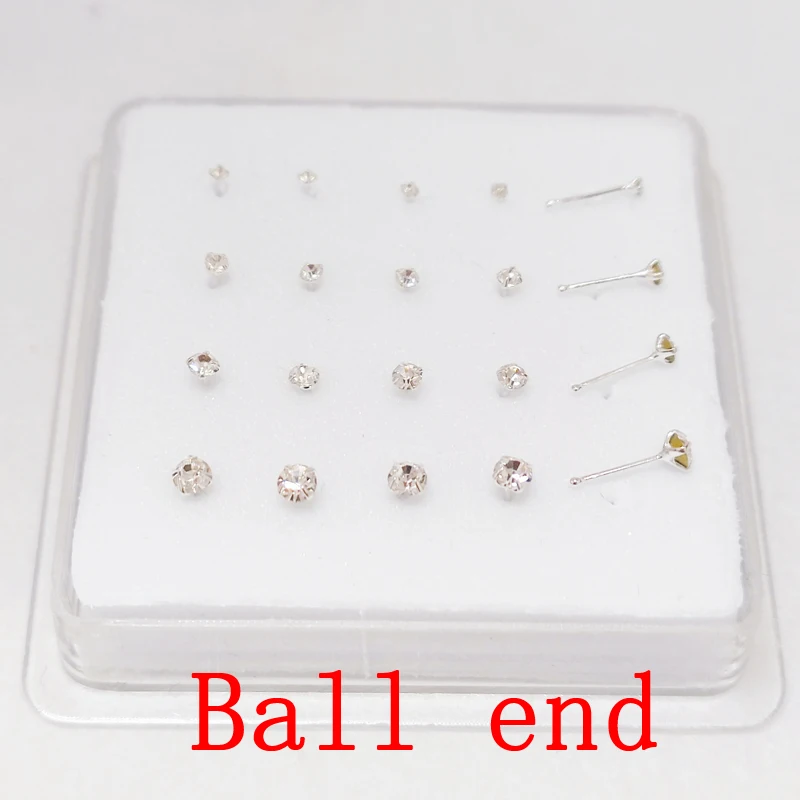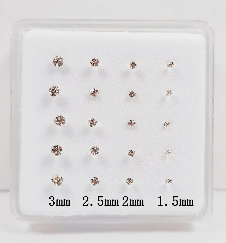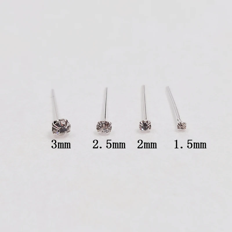 Женская серебряная шпилька для носа 1,5 мм, 2 мм, 2,5 мм, 3 мм, разные размеры, прозрачная кристальная шпилька для носа, маленькая косточка Для Пирсинга, ювелирные изделия, 20 детской