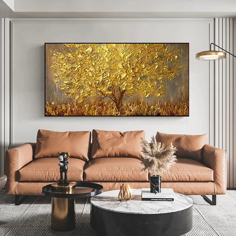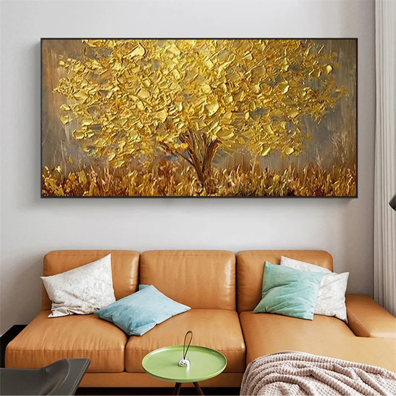 Большая 3D картина с изображением ножа золотого дерева на холсте, настенное искусство, современный пейзаж, картина маслом, принты и Плакаты для гостиной, домашний декор