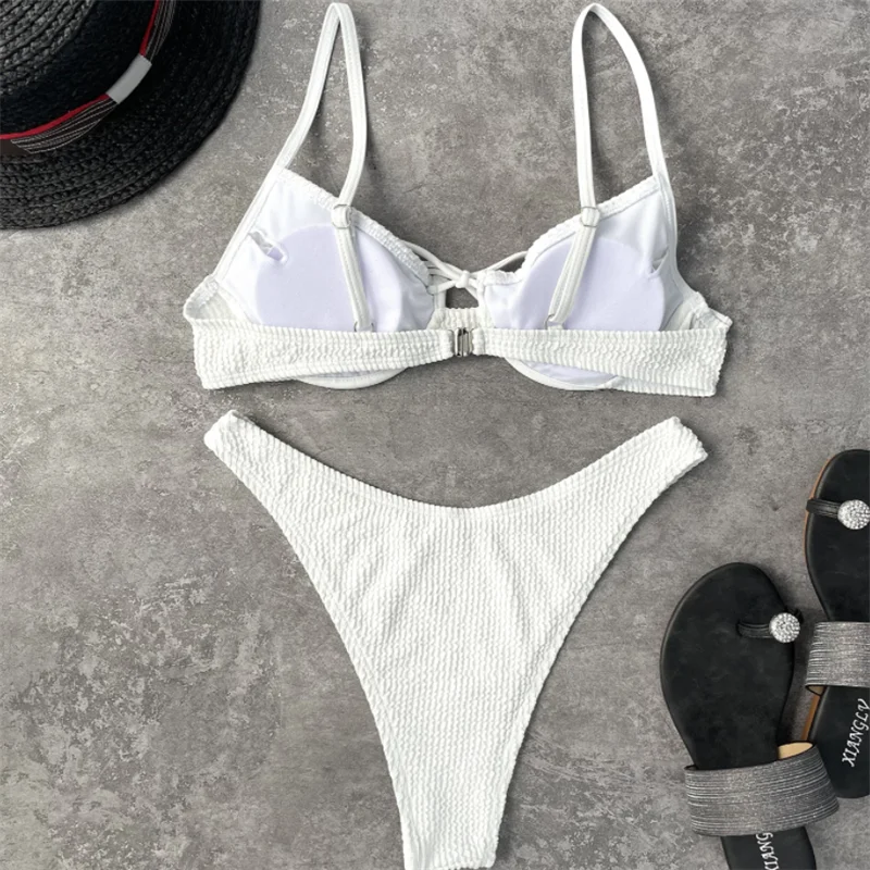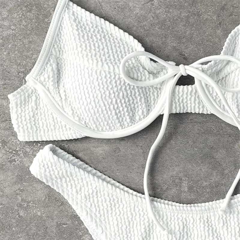 Купальник женский однотонный на шнуровке, пикантный бикини с чашками пуш-ап, халтер, пляжная одежда, комплект для плавания, комплект из 2 предметов, 2021