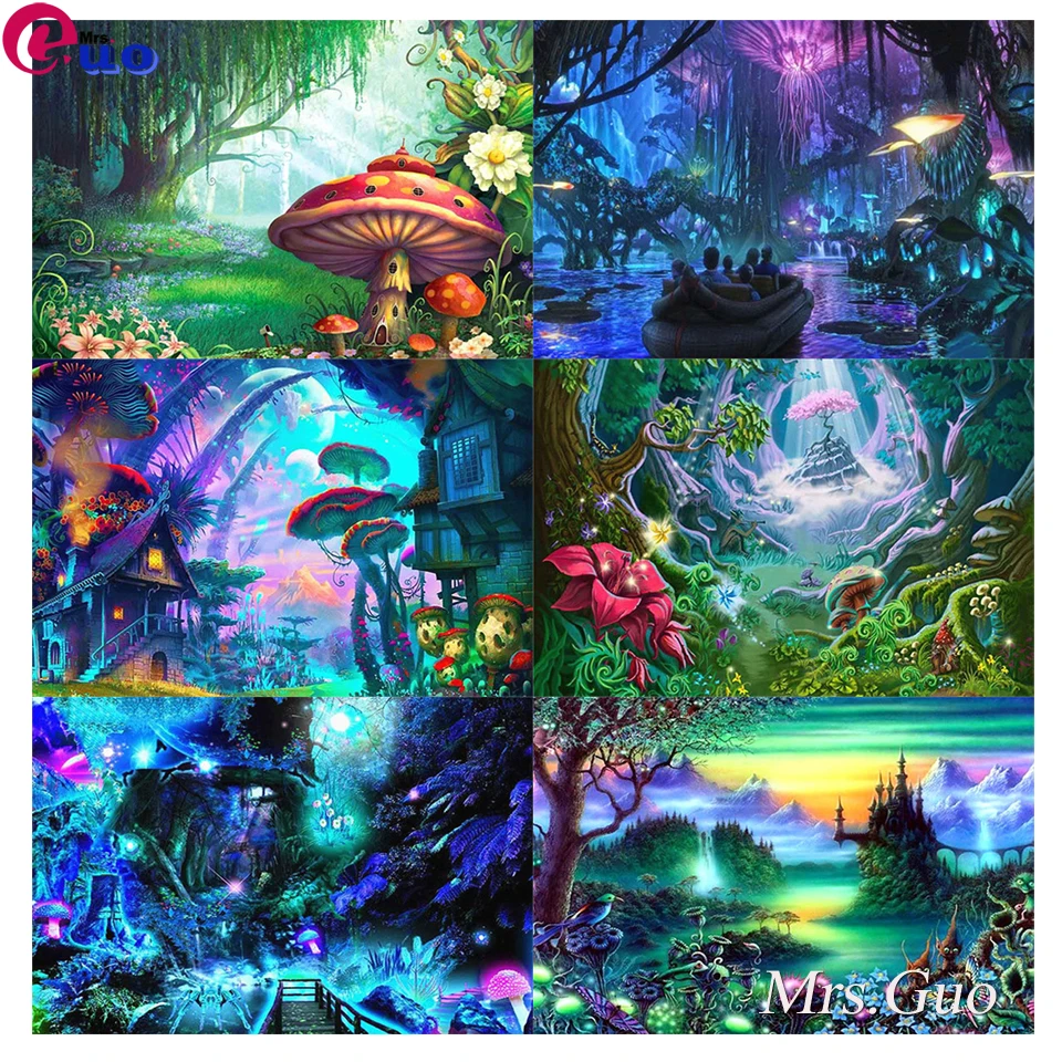 Гриб и лес круглая квадратная Алмазная вышивка 5D DIY Алмазная картина фантазия сказочный мир пейзаж домашний декор