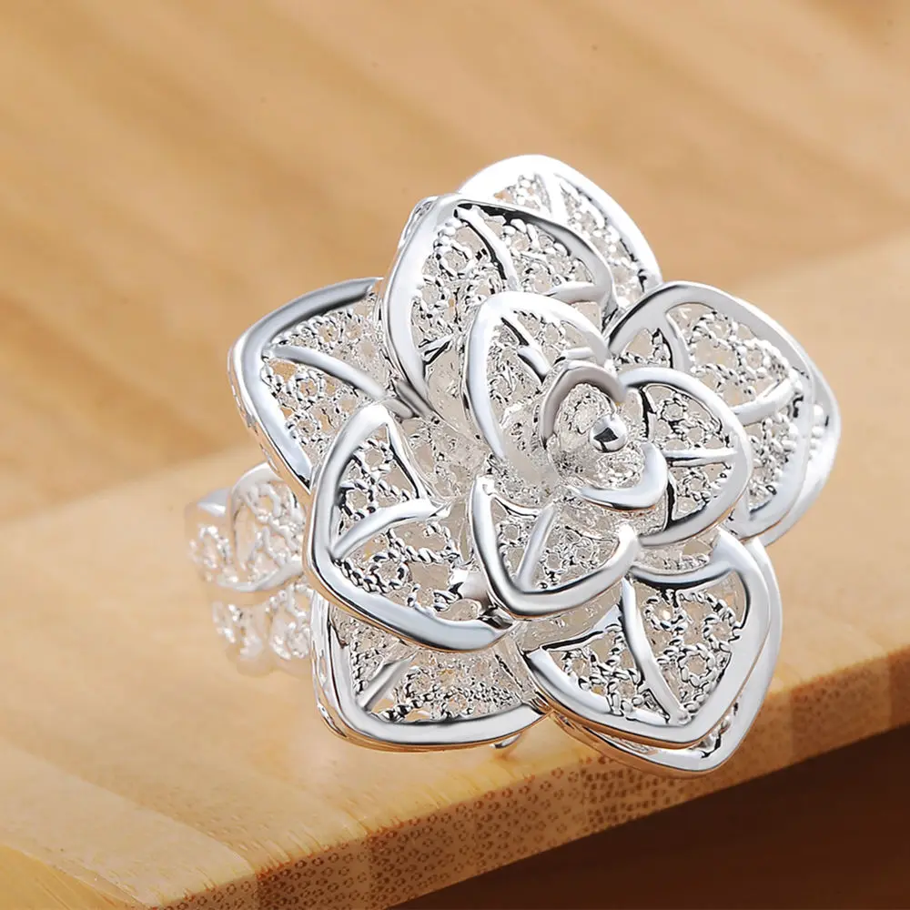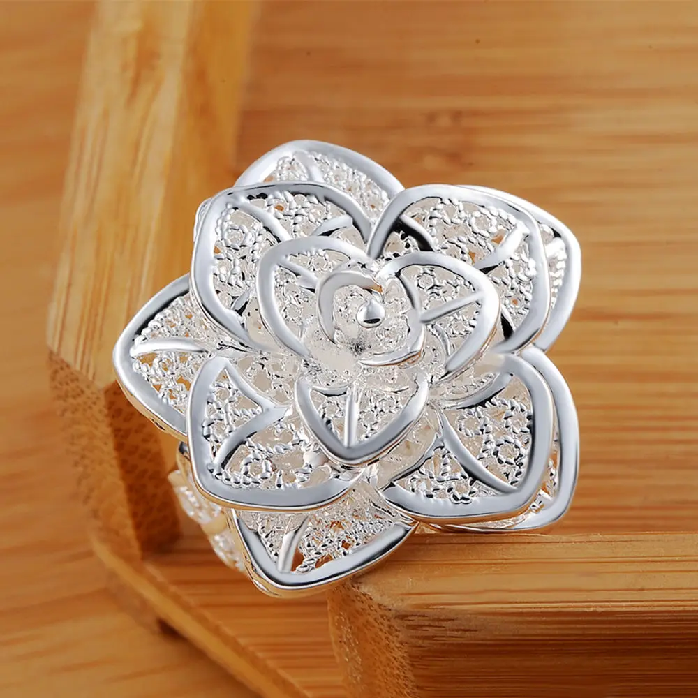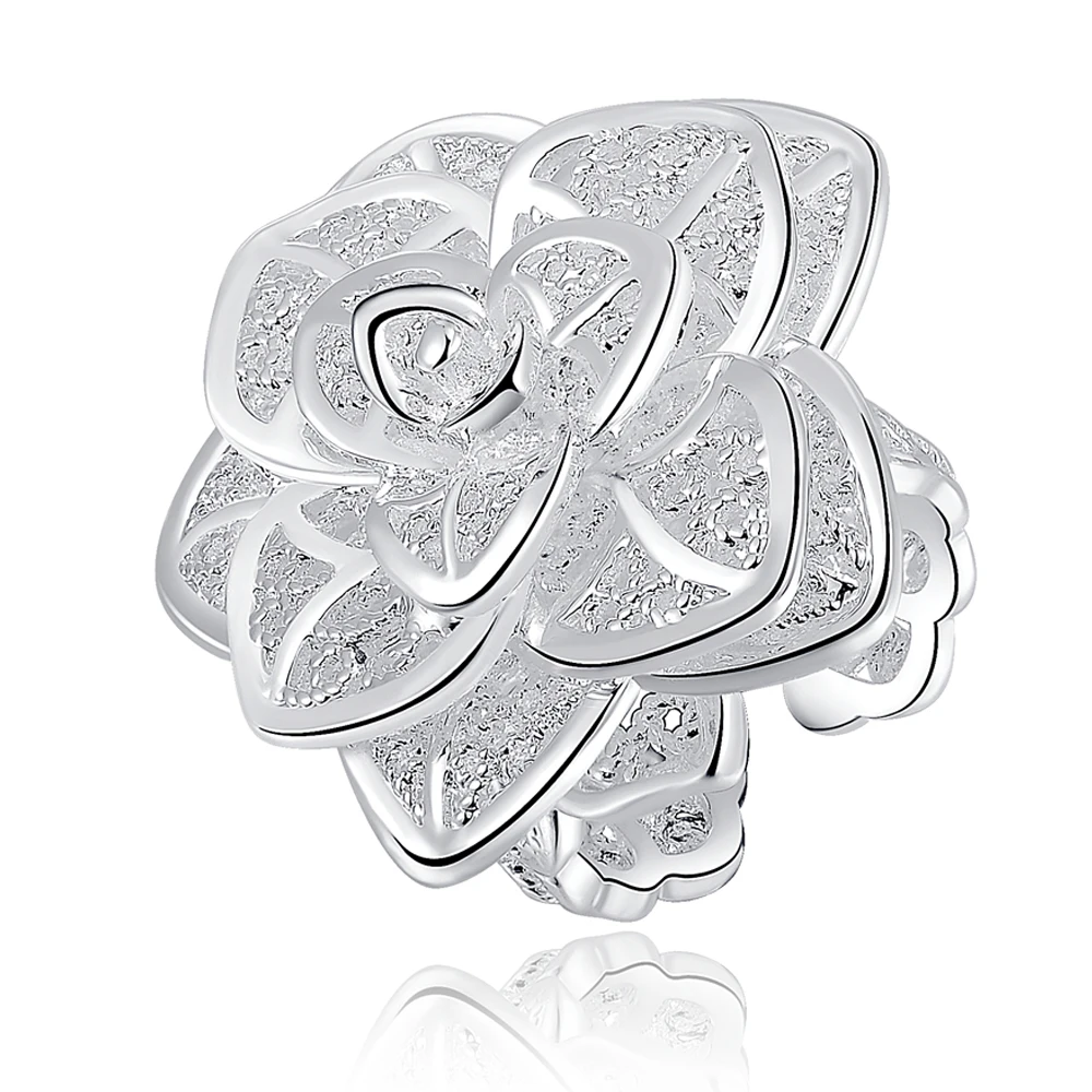 Кольца из стерлингового серебра 925 пробы, модные, с цветком розы, открытые, кольца на палец для женщин, для свадьбы, помолвки, вечевечерние, ювелирные изделия, подарок