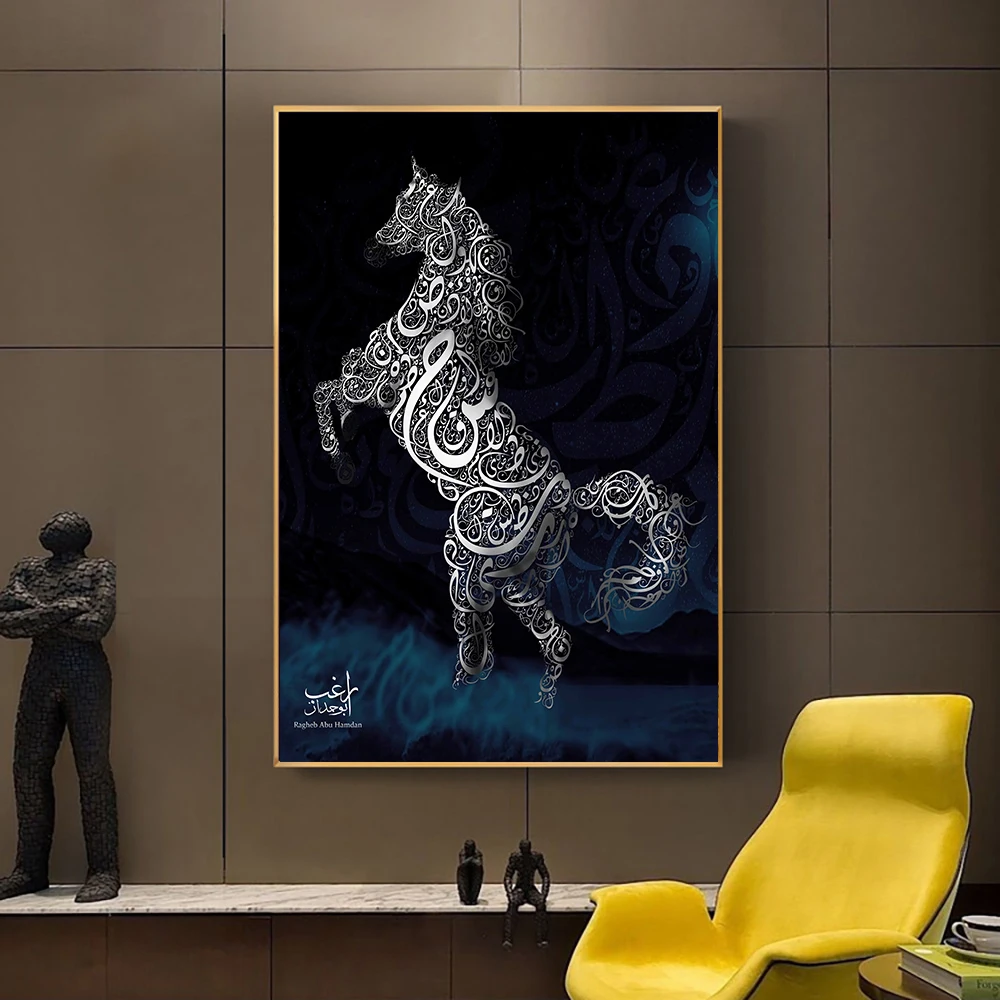Арабская каллиграфия лошадь лют Флагон художественный постер и печать исламский суфизм крутящийся Дервиш Холст Картина мусульманский Декор картина