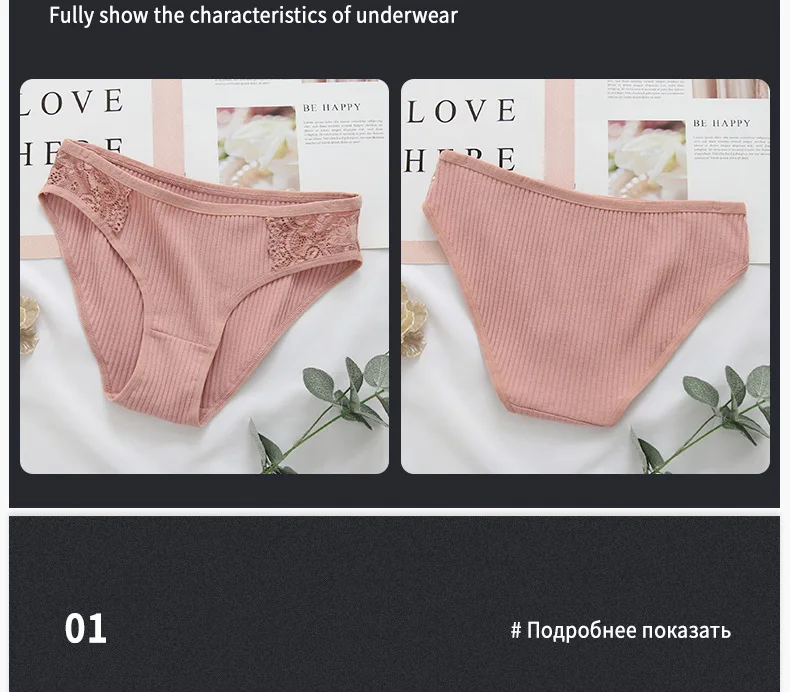 Трусы женские хлопковые, кружевные, однотонные