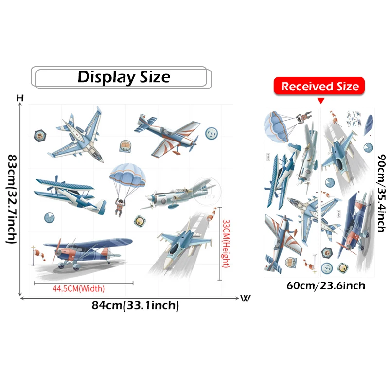 themeBlue Airplane Aircraft Wall Stickers for Kids Room