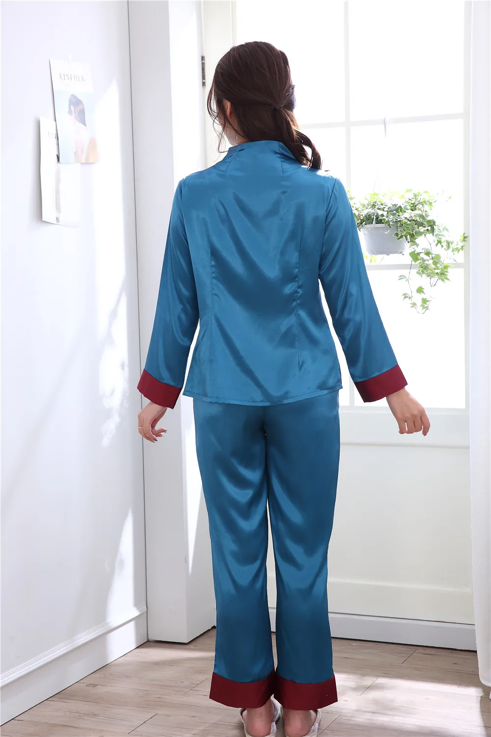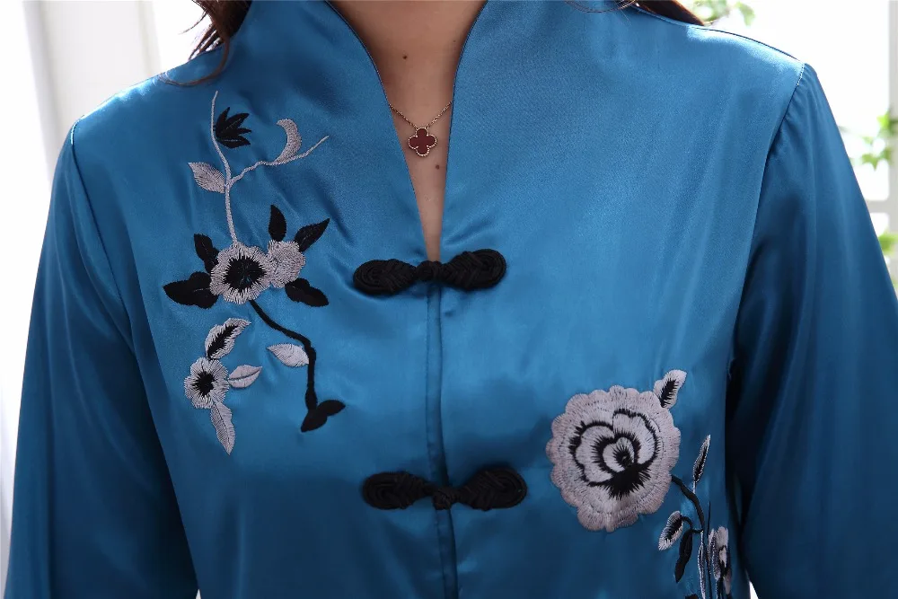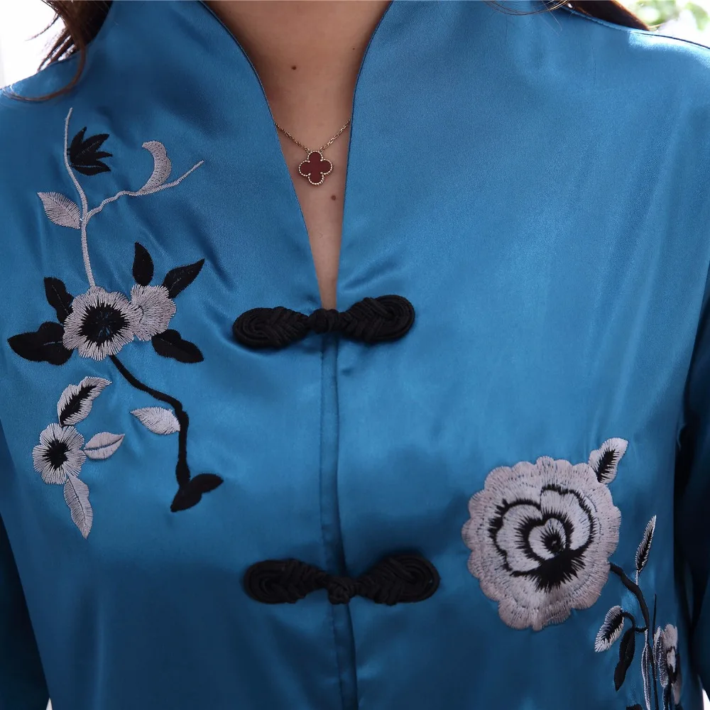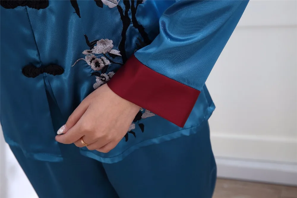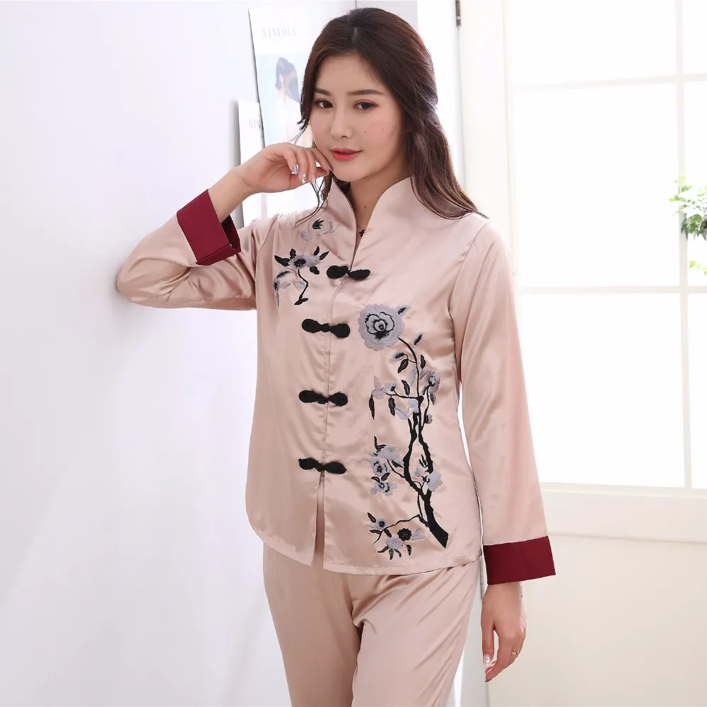 Комплект из 2 предметов, китайский Стиль Женская украшенная обувь Пижама с цветами комплект Лидер продаж и сатина, пижамы, костюм с цветочным принтом Новинка кнопка, одежда для сна, Размеры M, L, XL, XXL 3XL