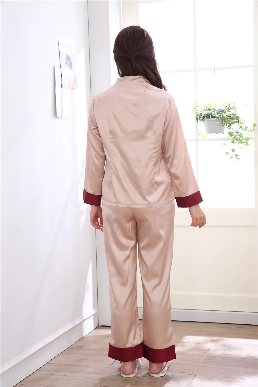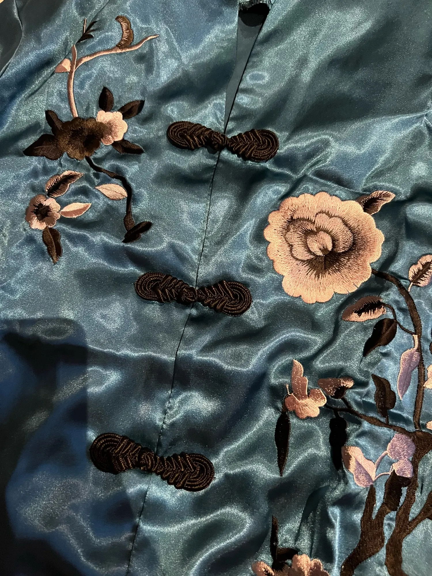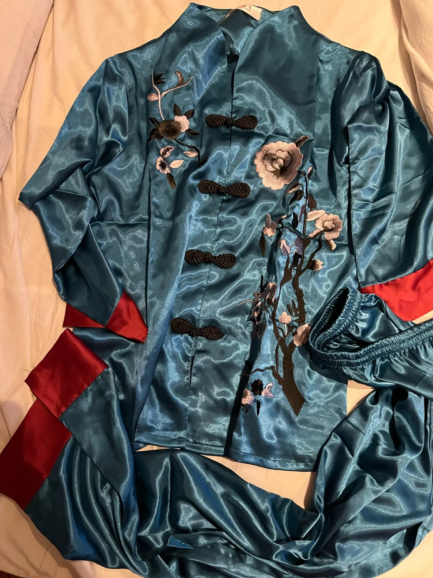Комплект из 2 предметов, китайский Стиль Женская украшенная обувь Пижама с цветами комплект Лидер продаж и сатина, пижамы, костюм с цветочным принтом Новинка кнопка, одежда для сна, Размеры M, L, XL, XXL 3XL