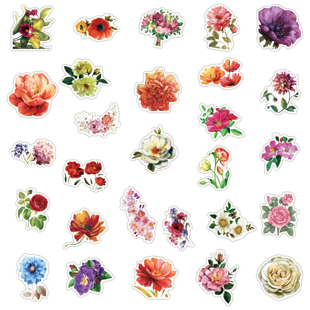 50pcs Rose FLowers Stickers For Stationery Notebooks Kscraft Flower