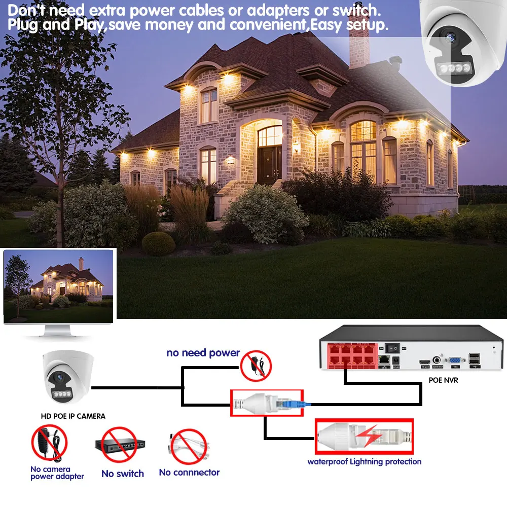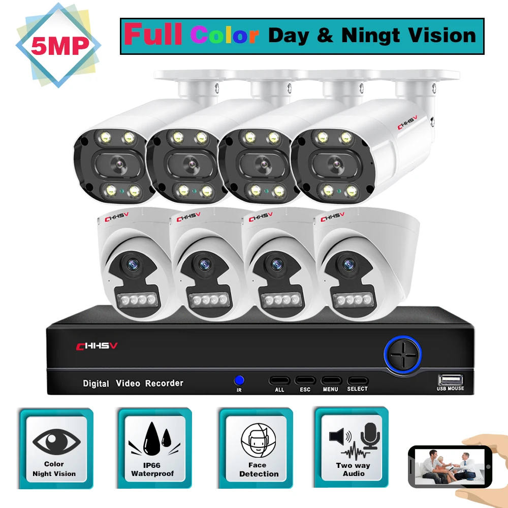 5MP 8-канальный сетевой видеорегистратор NVR POE IP Камера Системы открытый Водонепроницаемый полный Цвет Видение безопасности Камера видеонаблюдение Системы 8ch CCTV комплект