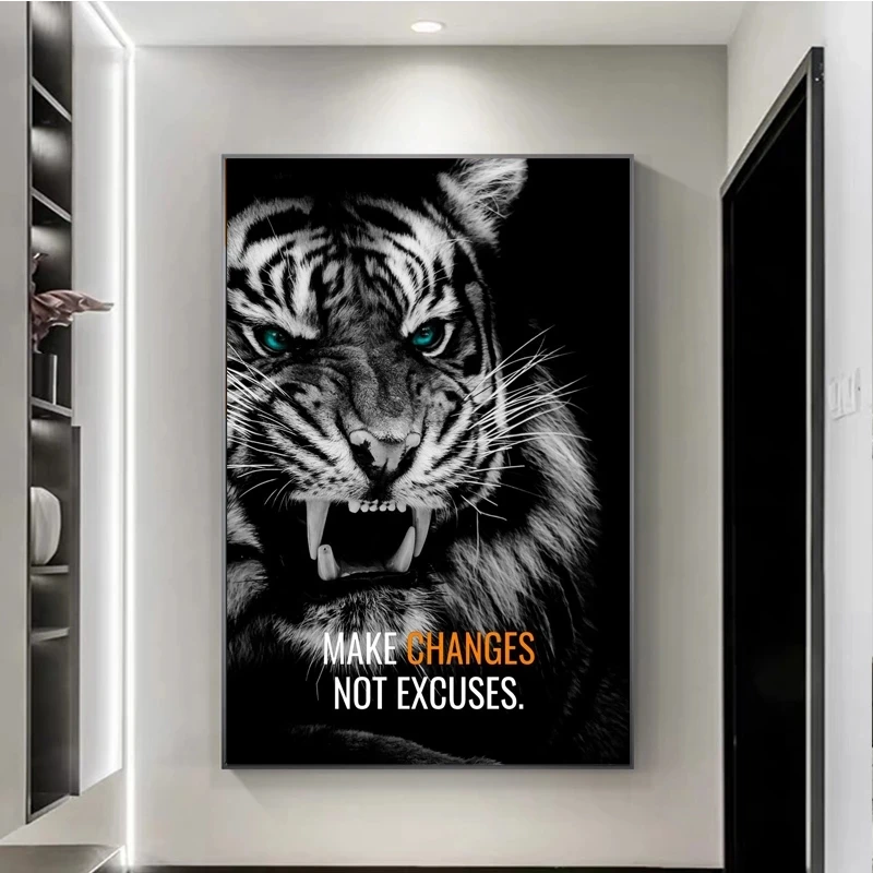 Скандинавский холст с изображением Черного Тигра леопарда волка, настенное украшение, активные усилия, вдохновляющее искусство, Постер, украшение для офиса и дома