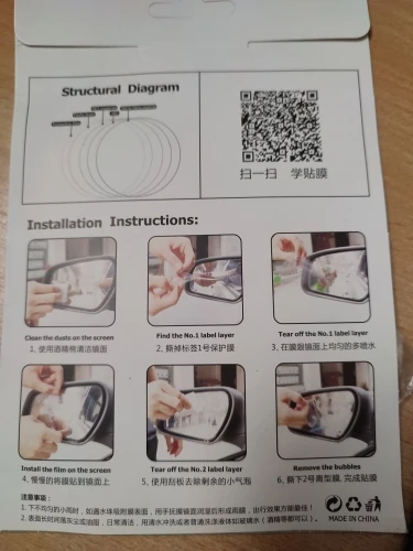 Выиграл плёнку 95х95 за один цент. Посылка пришла без каких-либо дефектов, не помятая. В комплекте идут 2 плёнки, сухая салфетка, влажная салфетка и так же небольшая карточка для выведения пузырей. Пока что ещё не клеил на зеркала, позже смогу дополнить отзыв после использования