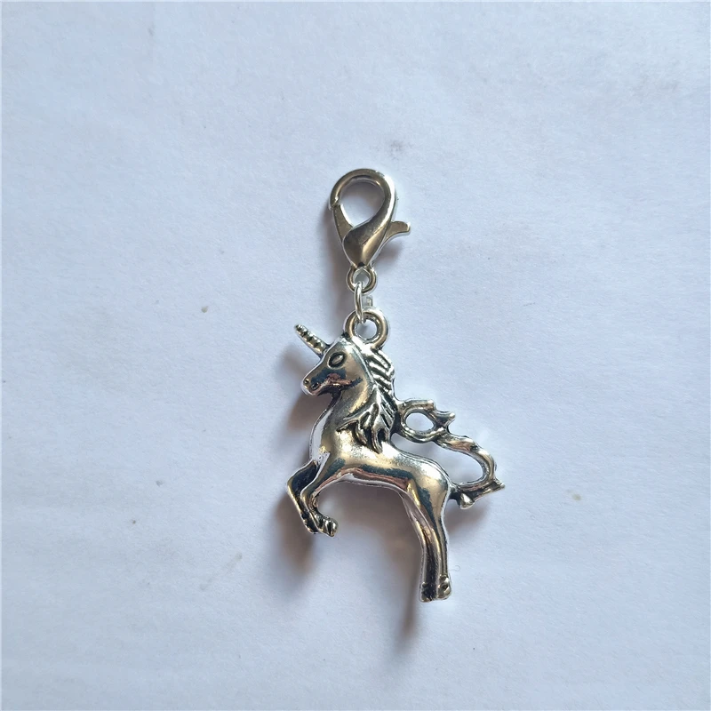 1 антикварный серебряный шарм в виде единорога, зажим в виде единорога, Шарм на молнии в виде единорога, Шарм-лошадь