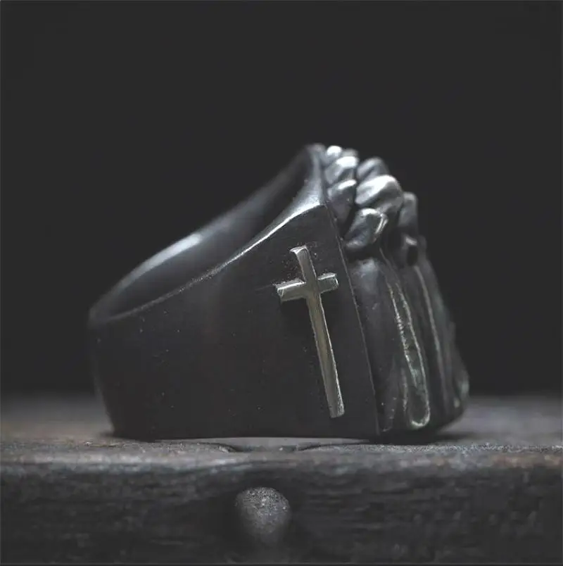 Креативное кольцо в стиле ретро, ювелирное изделие, таинственный черный наряд, толпа, крест, кольцо для мужчин