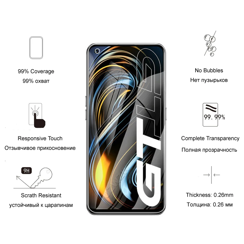 Защитное закаленное стекло для смартфона Realme GT с твердостью 9H, 2,5D, 0,26 мм
