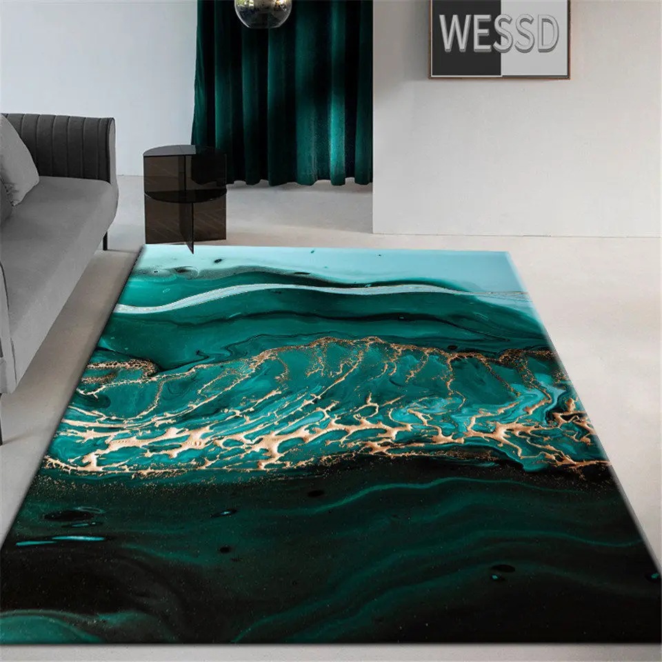 Абстрактный ковер с зеленой морской водой, современный роскошный ковер для гостиной, прикроватный мягкий ковер, Нескользящие Коврики для стульев, Придверный коврик