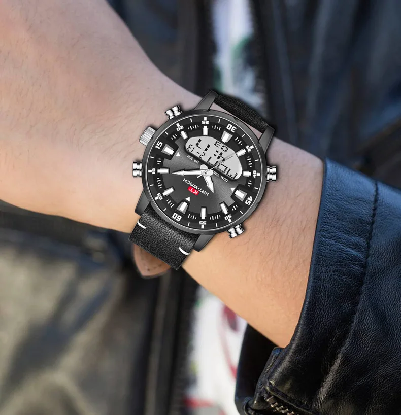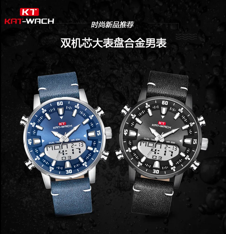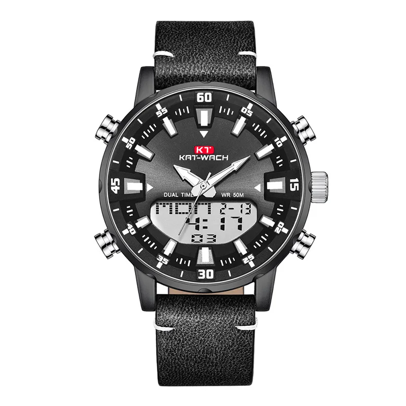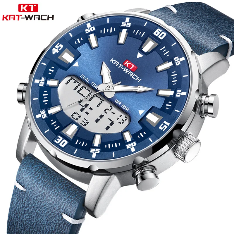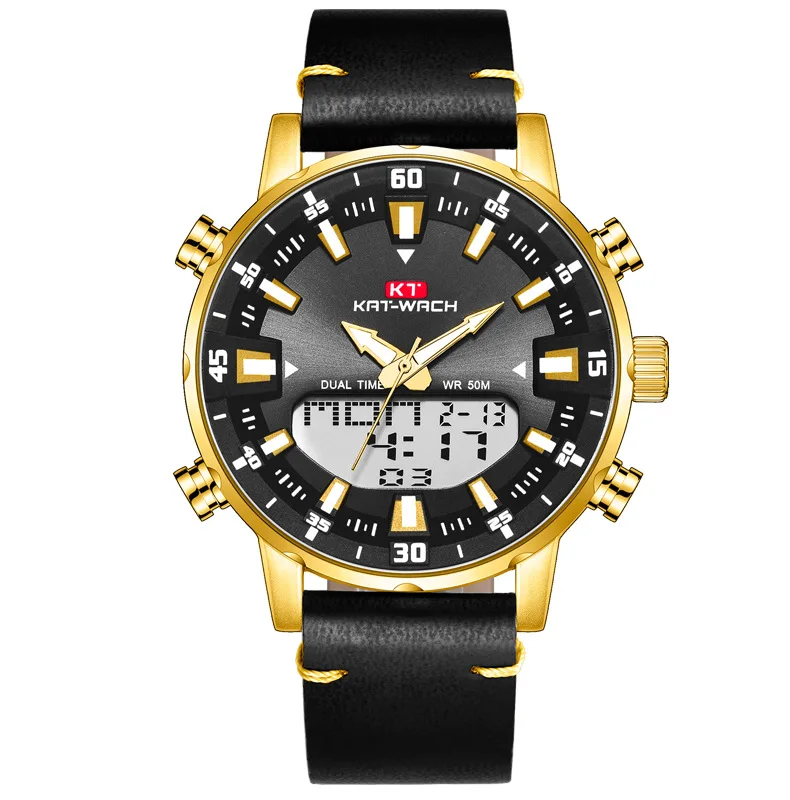 Бренд KAT, мужские часы, модные, новые, мужские часы с ремешком, многофункциональные, двойной механизм, светящийся указатель, водонепроницаемые, мужские часы класса люкс