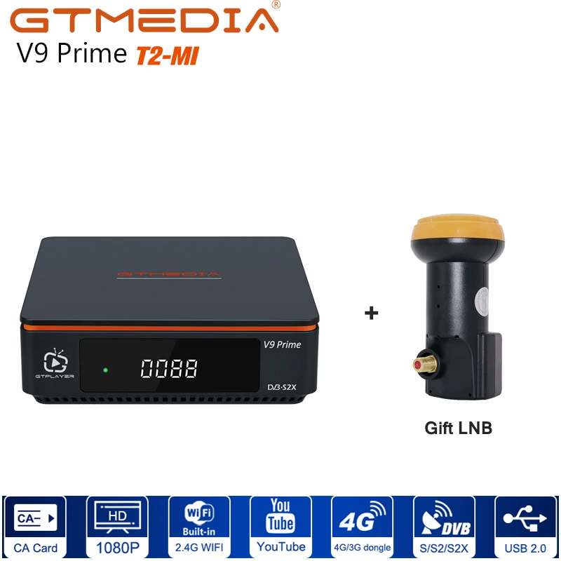 Спутниковый ТВ-приемник GTmedia V9 Prime, H.265 AVS +,VCMACMMulti-streamT2MI, поддержка рецепторов DVB-SS2S2X, LNB
