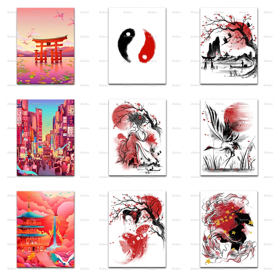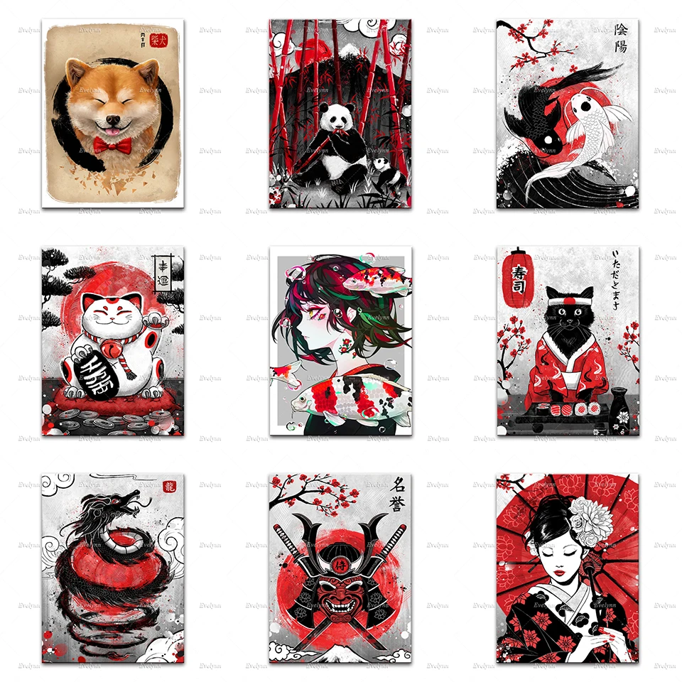 Настенное искусство в скандинавском стиле, ЯПОНСКИЕ ВИНТАЖНЫЕ печатные плакаты с рисунками кои рыбы Инь Янь, кошки суши, гейши, Kinkaku Ji киоту, модульные картины для гостиной