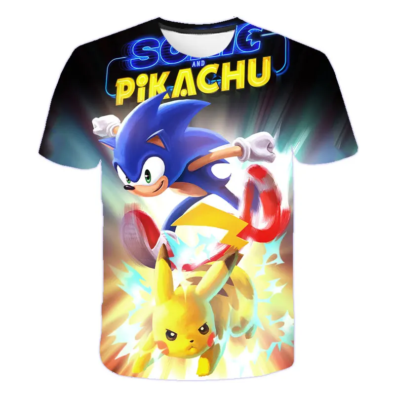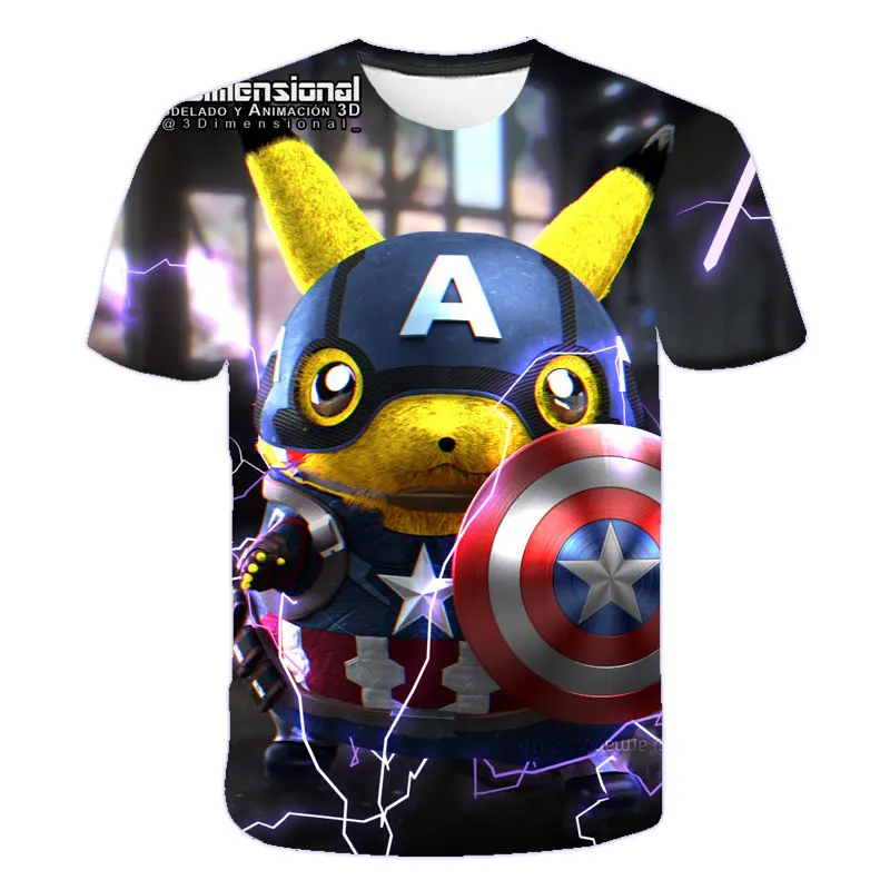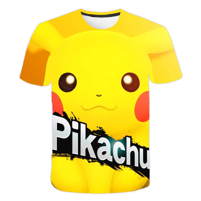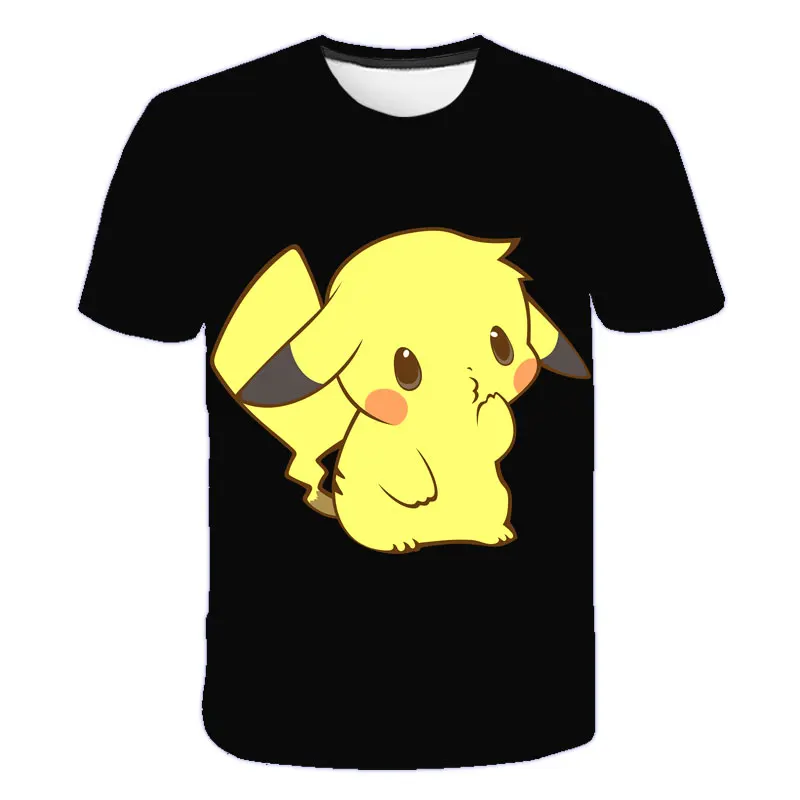 Детские футболки, черная футболка из полиэстера с коротким рукавом, забавная футболка с покемоном, детская одежда для мальчиков, 2021, летняя одежда для маленьких девочек